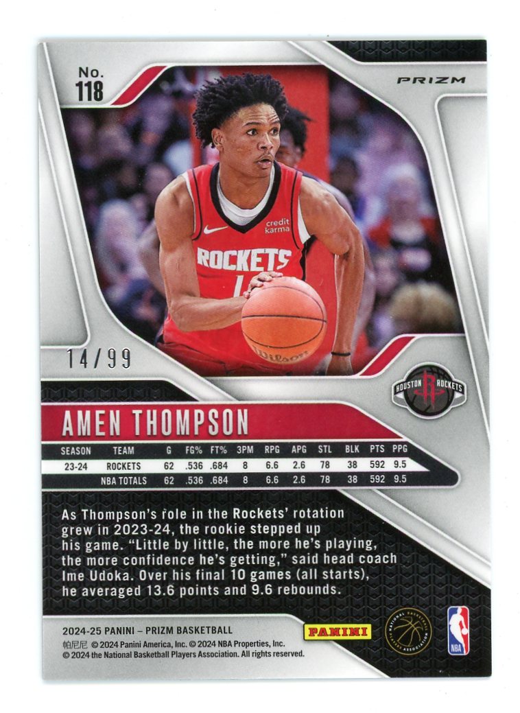 2024-25 Panini Prizm Basketball Amen Thompson Base Blue Pulsar Prizm #'ed 14/99