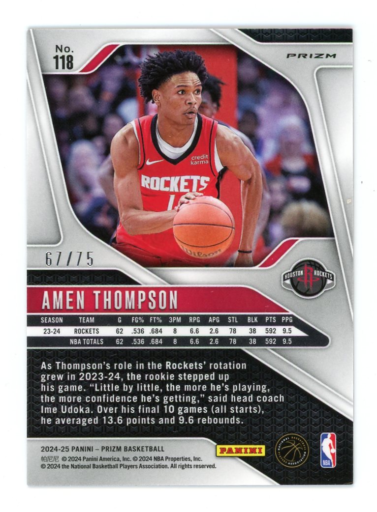 2024-25 Panini Prizm Basketball Amen Thompson Base Red Power Prizm #'ed 67/75