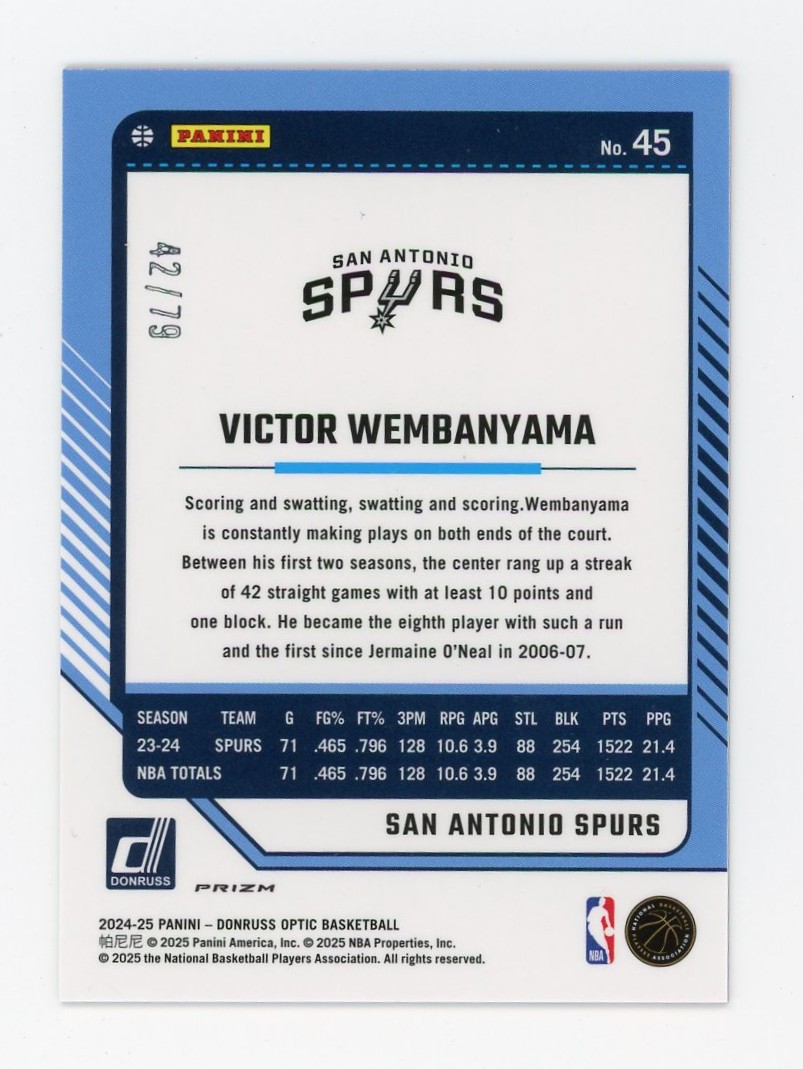 2024-25 Panini Donruss Optic Basketball Victor Wembanyama Base Pink Velocity Prizm #'ed 42/79