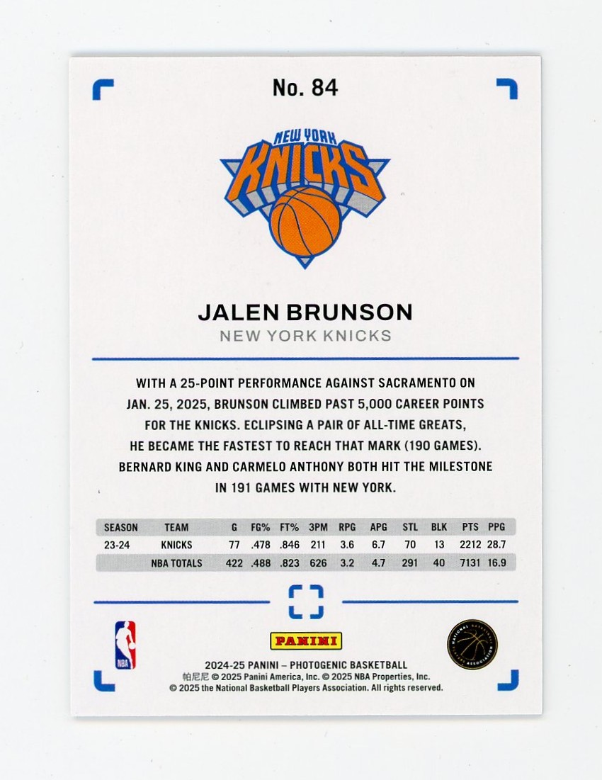 2024-25 Panini Photogenic Basketball Jalen Brunson Base Silver #'ed 83/99