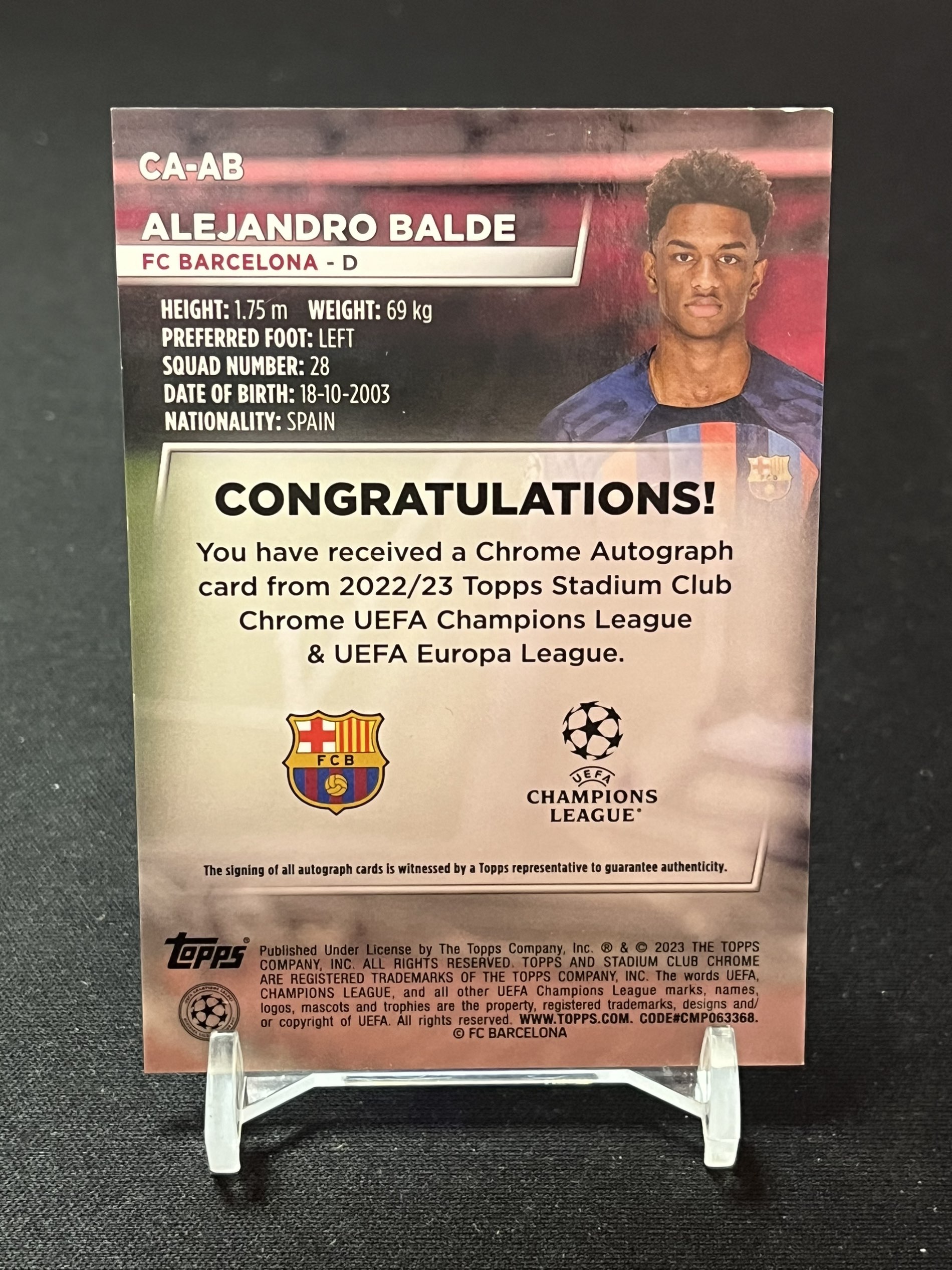【浩行拍卖 截标预付82%】2023 topps stadium club chrome Alejandro balde 欧冠竞技场 巴塞罗那 亚历杭德罗 巴尔德 折射 签字 专收必备 瑕疵看图「予汐」1029Q01様