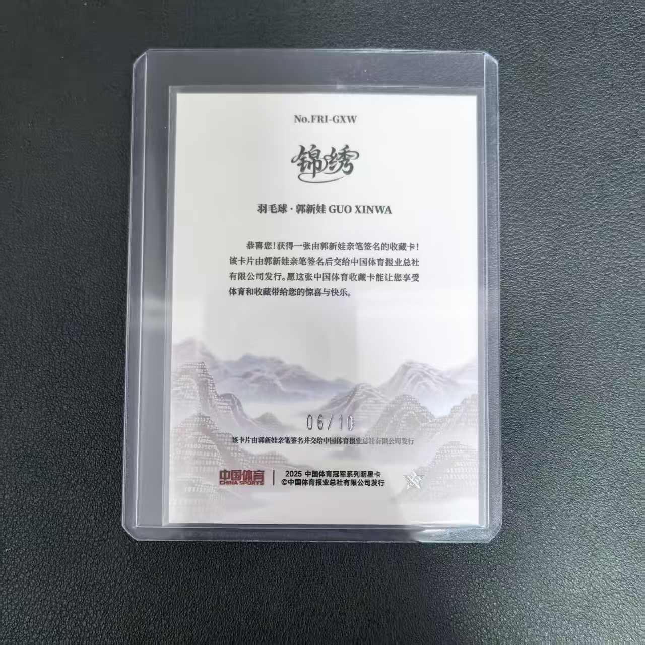 ![2025 奇卡 QICA 中国体育 郭新娃 [NGF拍卖] 锦绣 郭新娃 GUO XINWA 羽毛球 新锐签字 琥珀金折 签字 06/10编 卡品如图 收藏必备 鲨鱼](https://images.cardhobby.com/89ddd4d3fcd4366c99dcb14f0b9af8771761716168422.jpg)