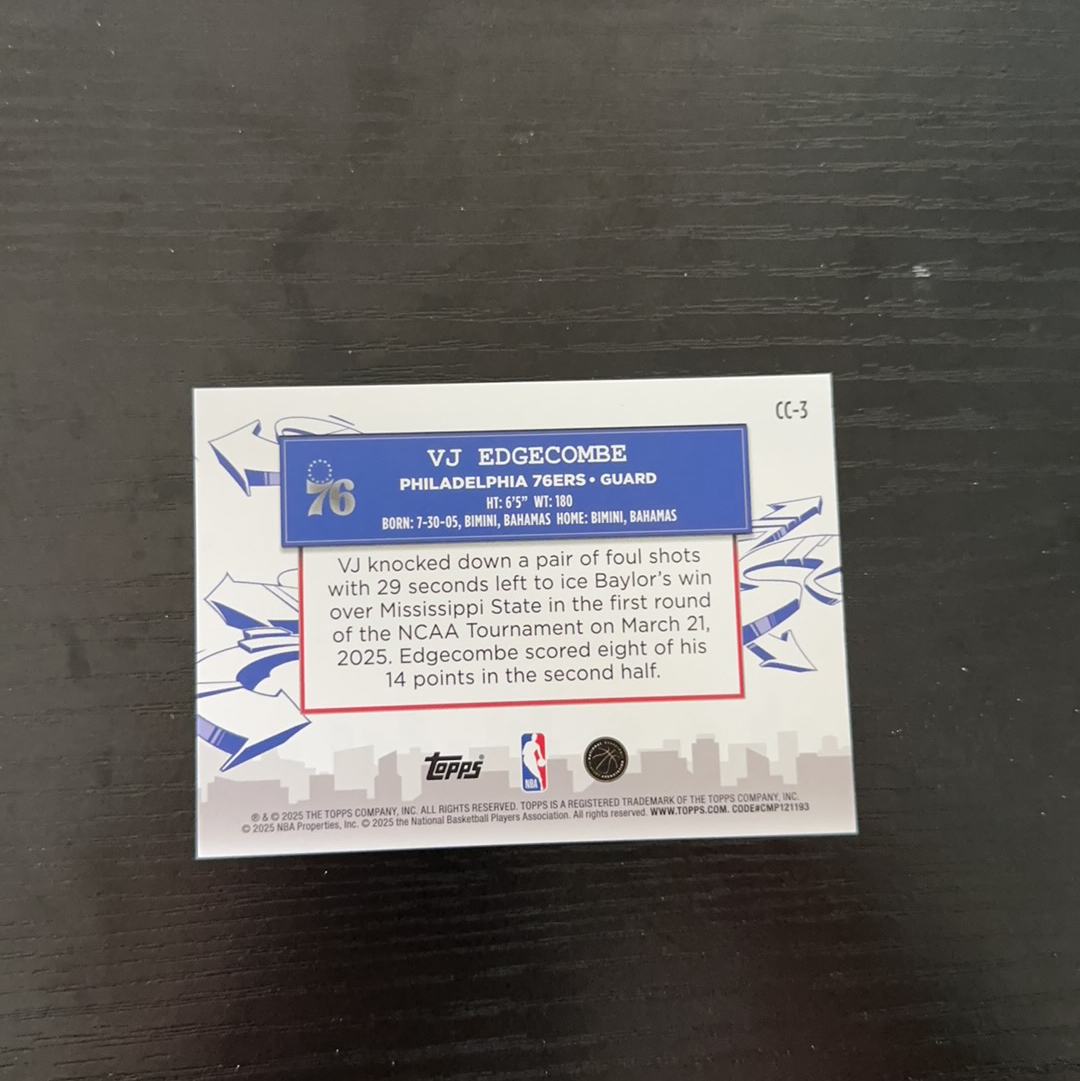 2025 Topps flagship Valdez VJ Edgecombe Jr RC 1号社团代拍 Topps 新秀 VJ 埃奇库姆 横版城市特卡 银闪折 折射 元年热门新秀 投资收藏首选 上头