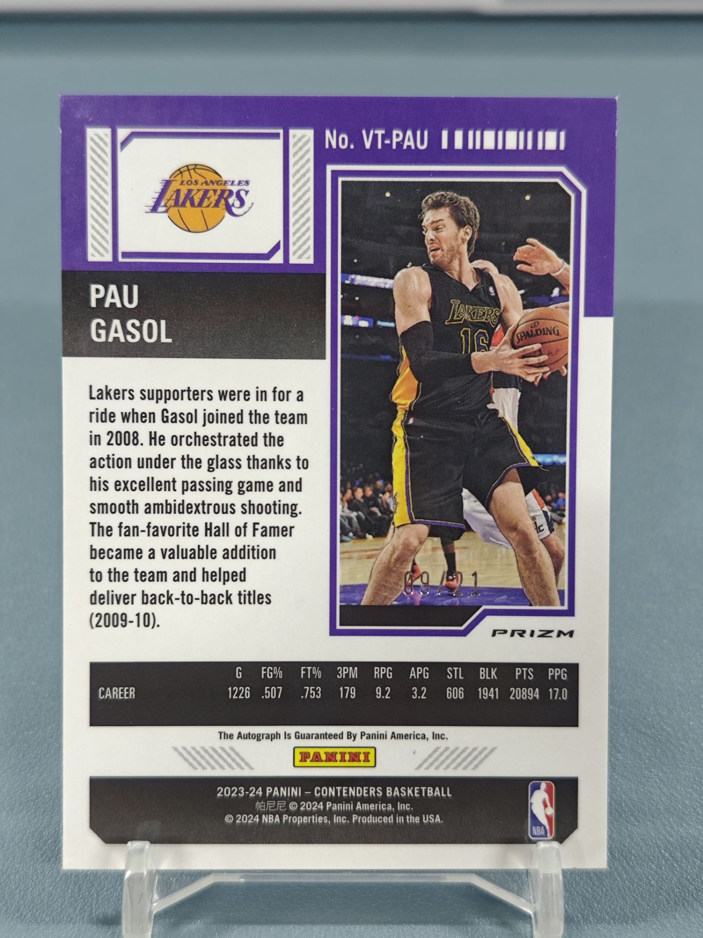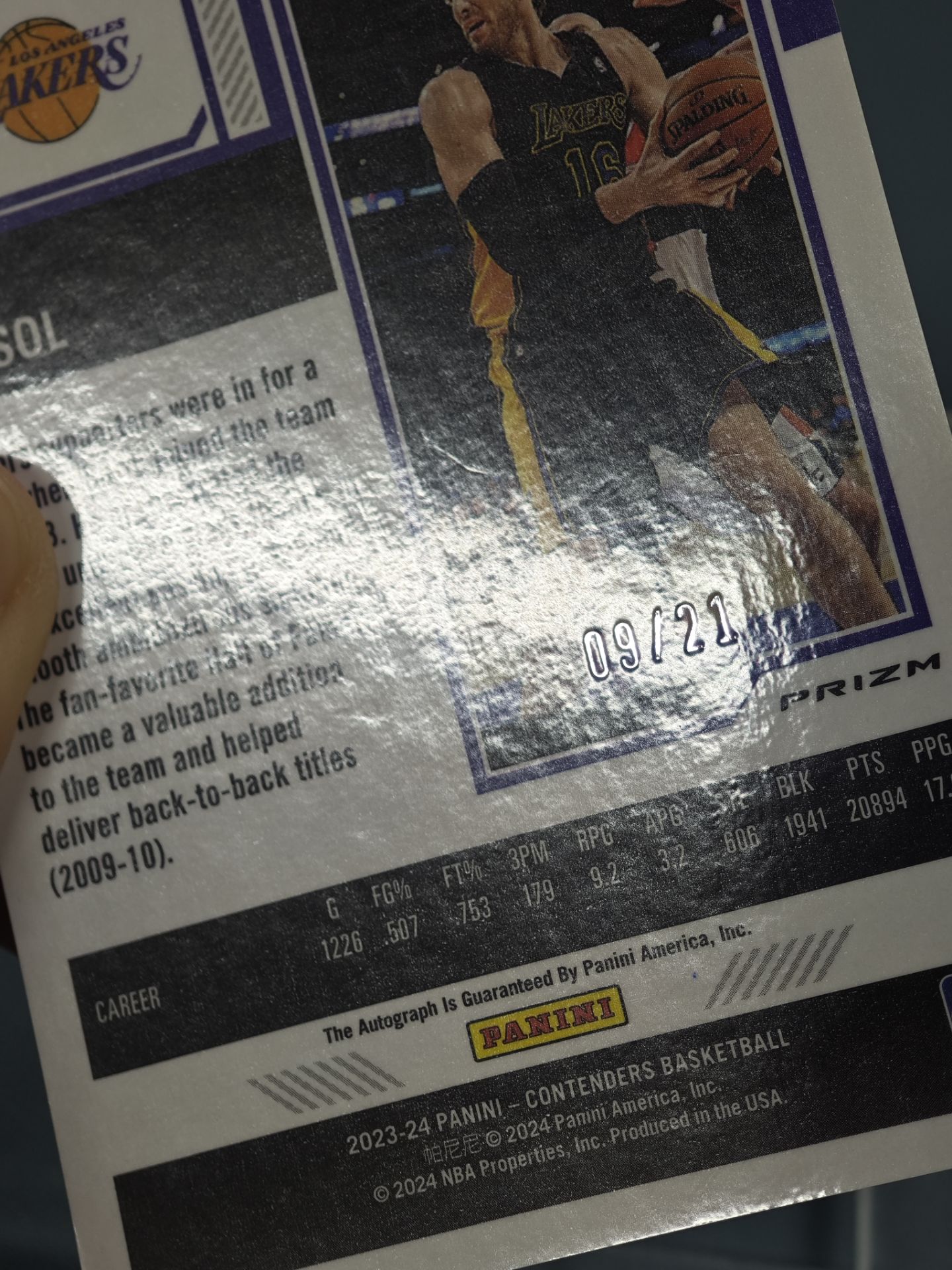 【浩行拍卖 截标预付82%】2023-24 panini Contenders Optic pau gasol 球票 湖人 保罗 加索尔 签字 卡签 背号签 蓝shimmer折 折射 9/21编 瑕疵看图 专收必备「卫计」1029D03單