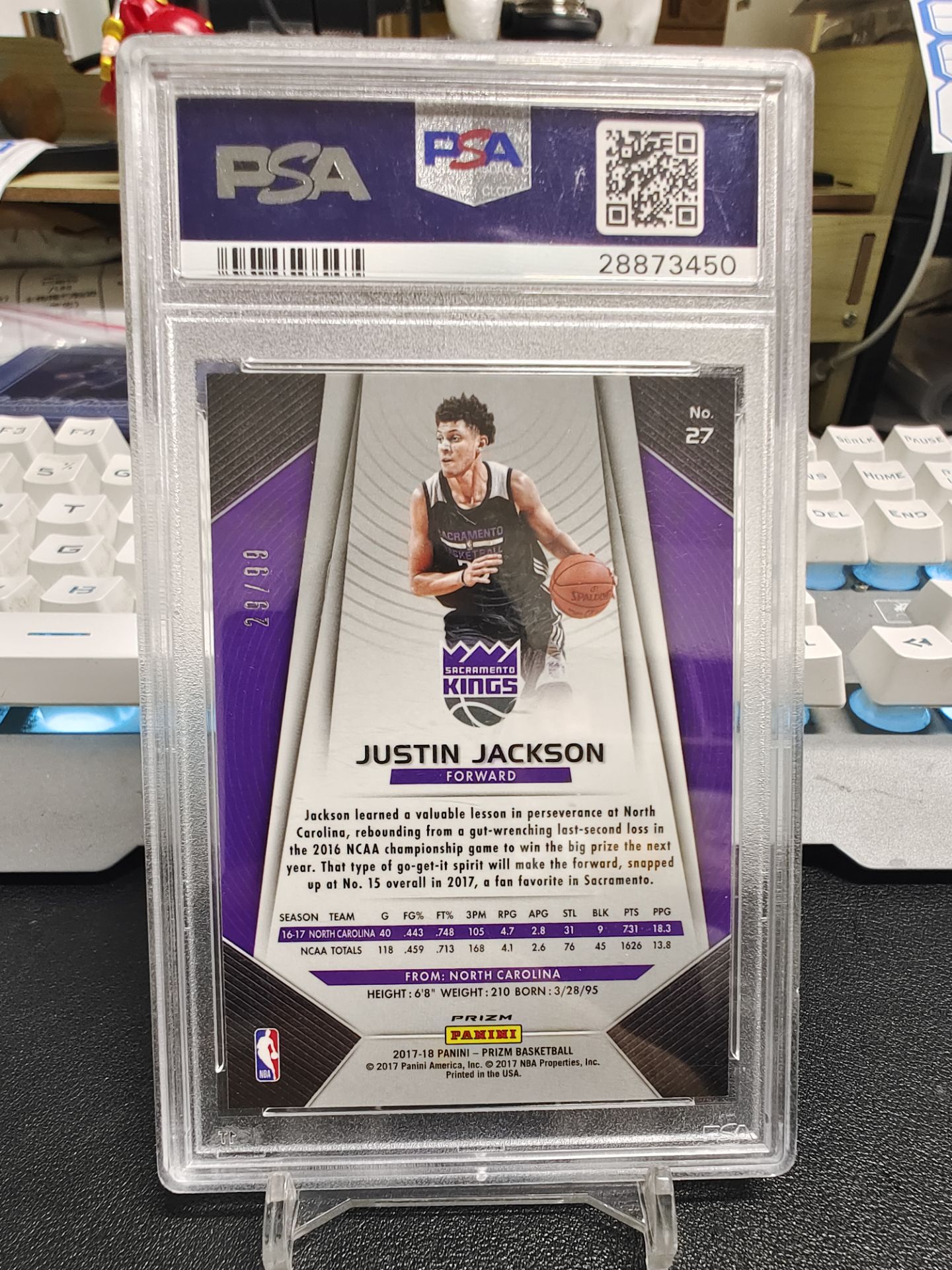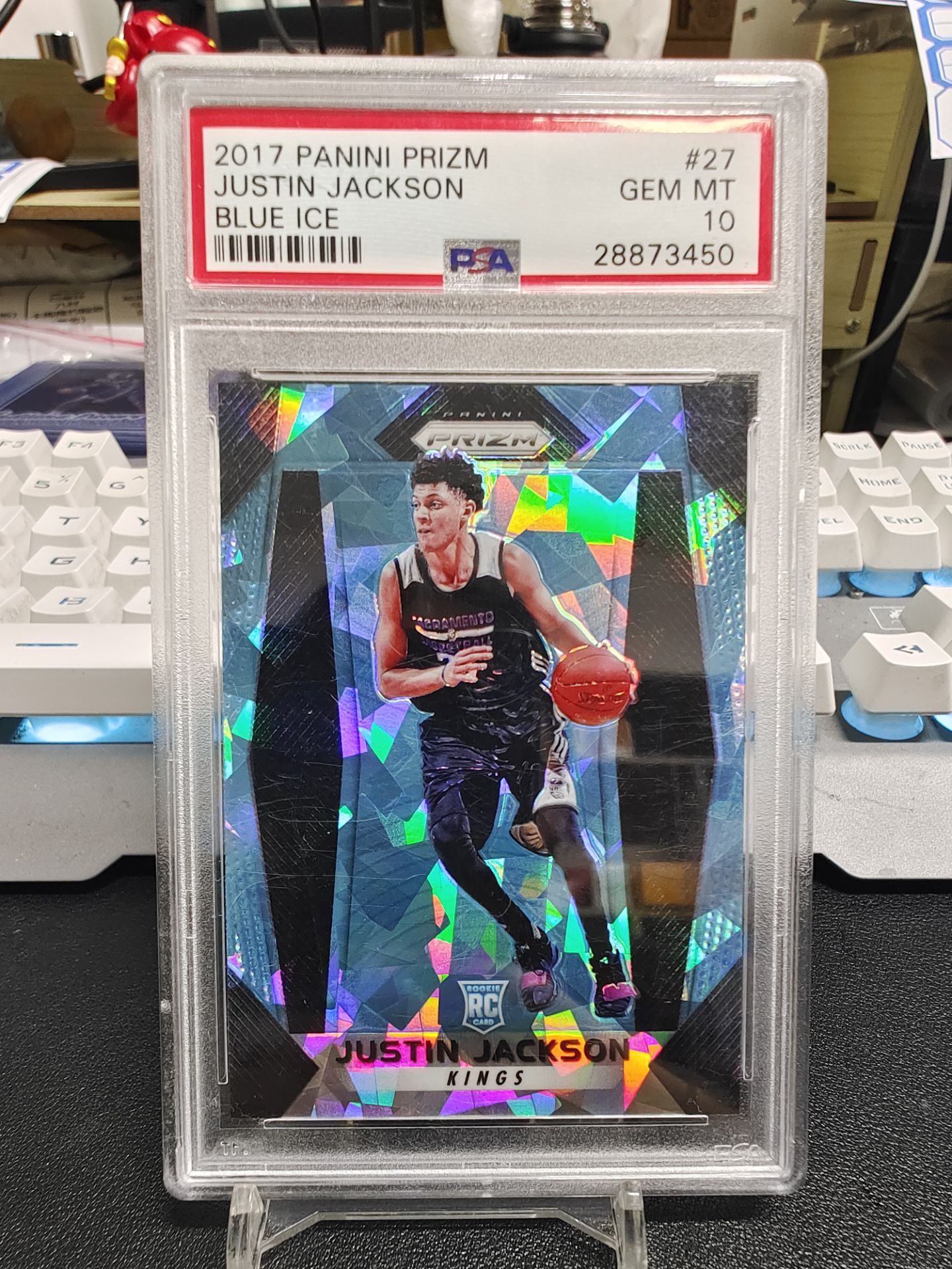 【浩行拍卖 截标预付82%】2017-18 panini prizm justin jackson 国王 贾斯汀 杰克逊 RC 新秀 蓝碎冰折 折射 29/99编 PSA10 评级 专收必备 壳微瑕「开题」1029D09恁
