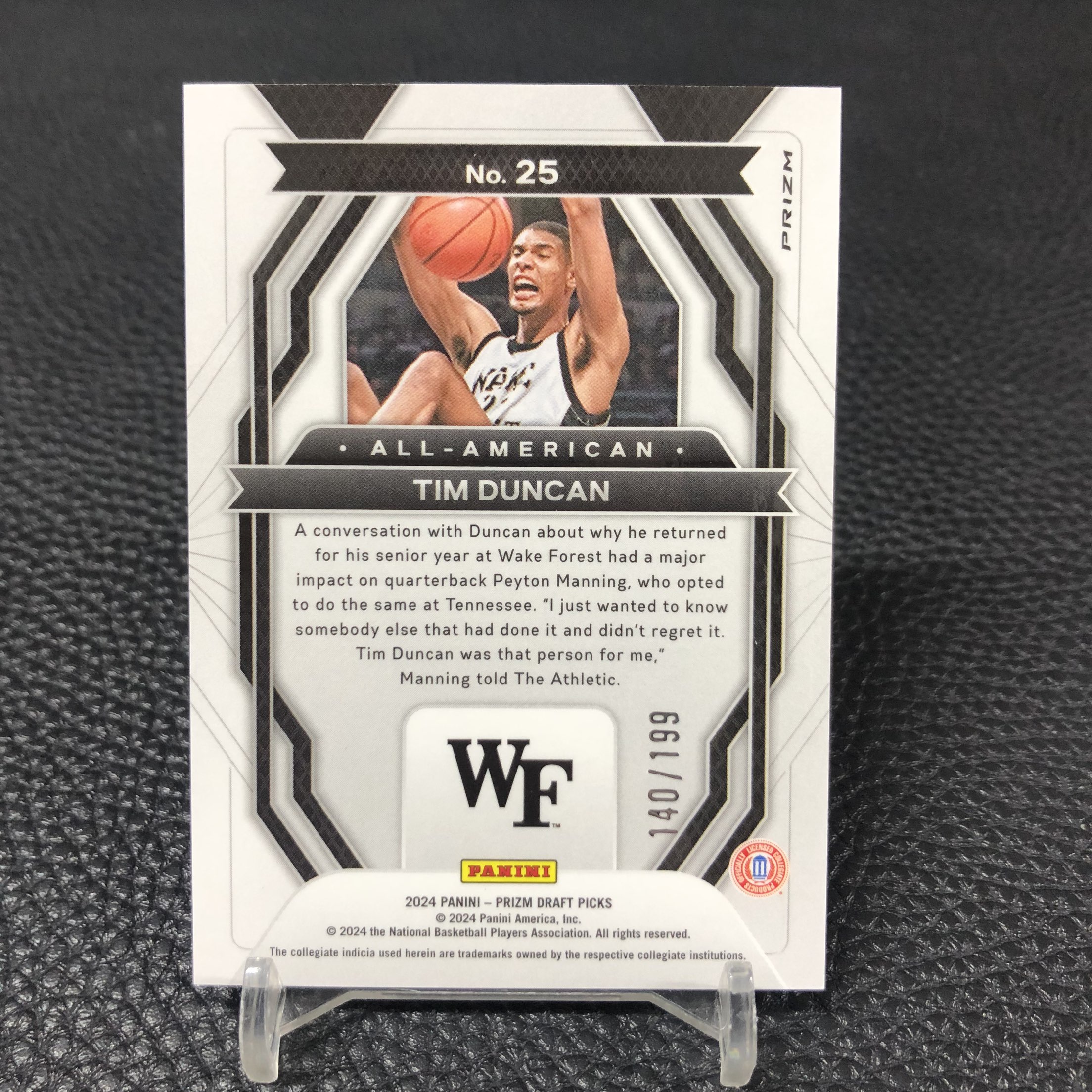 【浩行拍卖 截标预付82%】2024 panini prizm Tim Duncan 大学 蒂姆 邓肯 石佛 all american 蓝折 折射 140/199编 专收必备「内补」1029J01驡