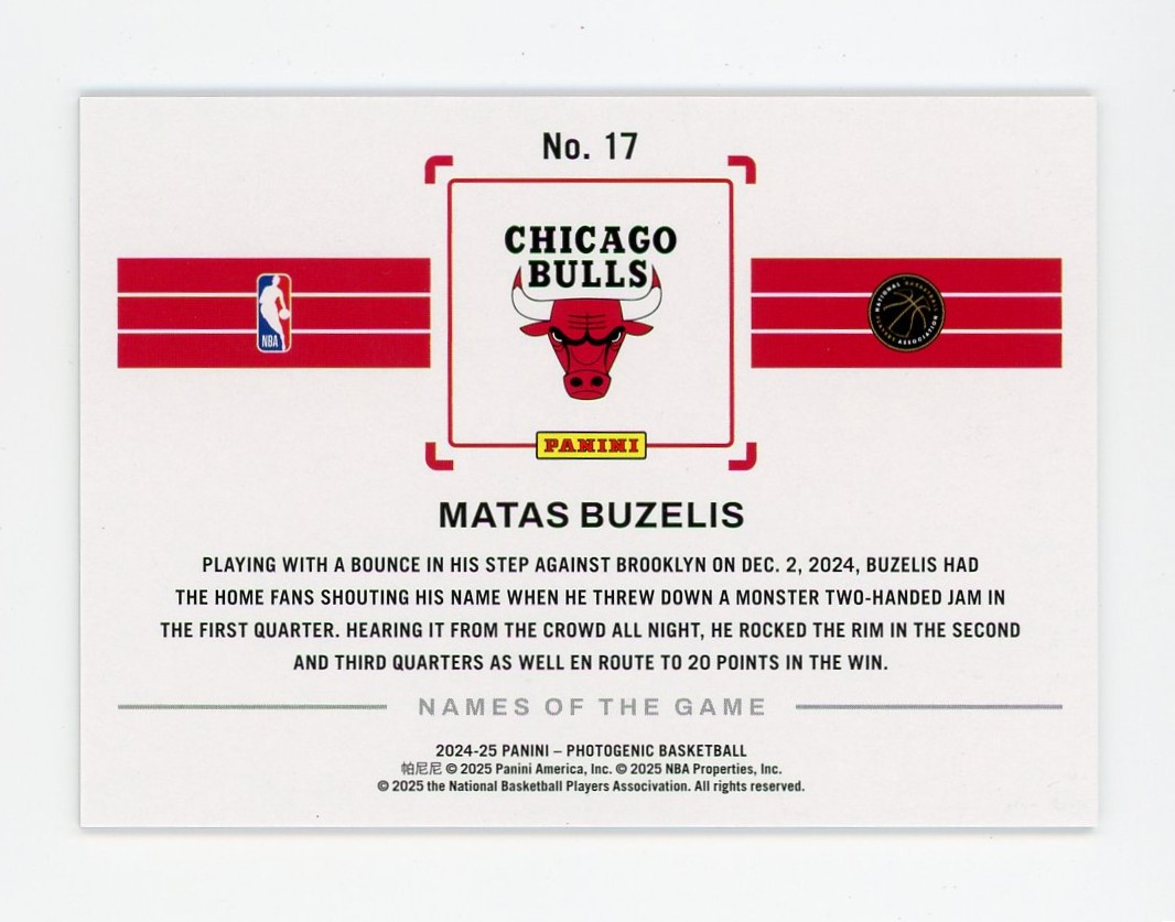 2024-25 Panini Photogenic Basketball Matas Buzelis Names of the Game RC SSP