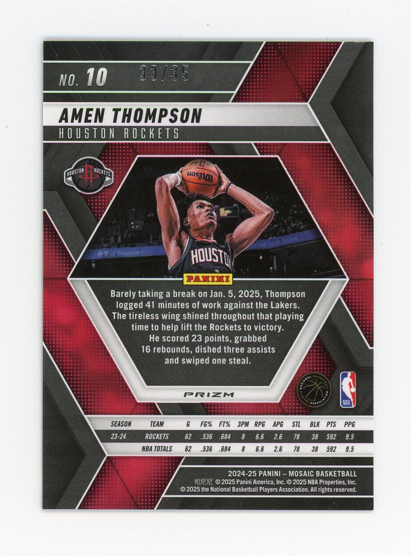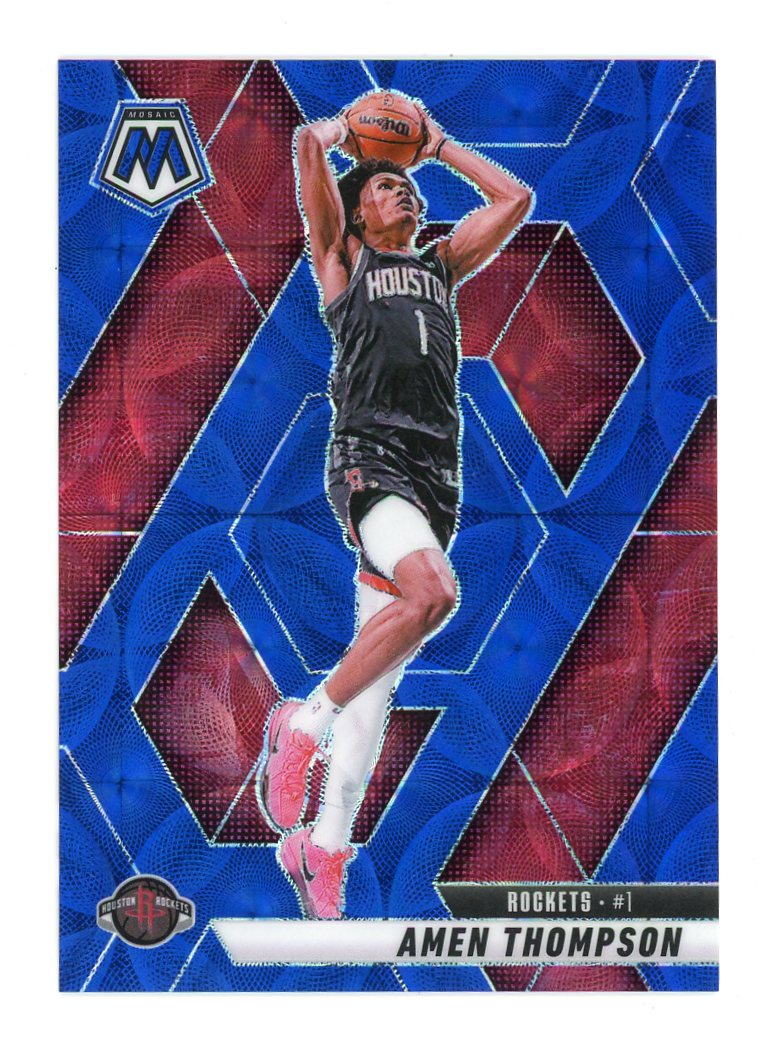 2024-25 Panini Mosaic Basketball Amen Thompson Base Mosaic International Blue Prizm #'ed 33/35