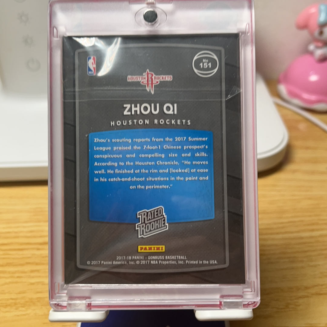 2017-18 Panini Donruss Zhou Qi RC 大魔王,周琦,火箭队,正新秀Base卡 卡品如图 收藏必备 凑套必备 卡砖仅供展示