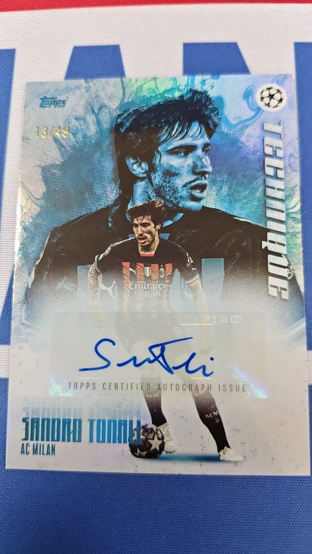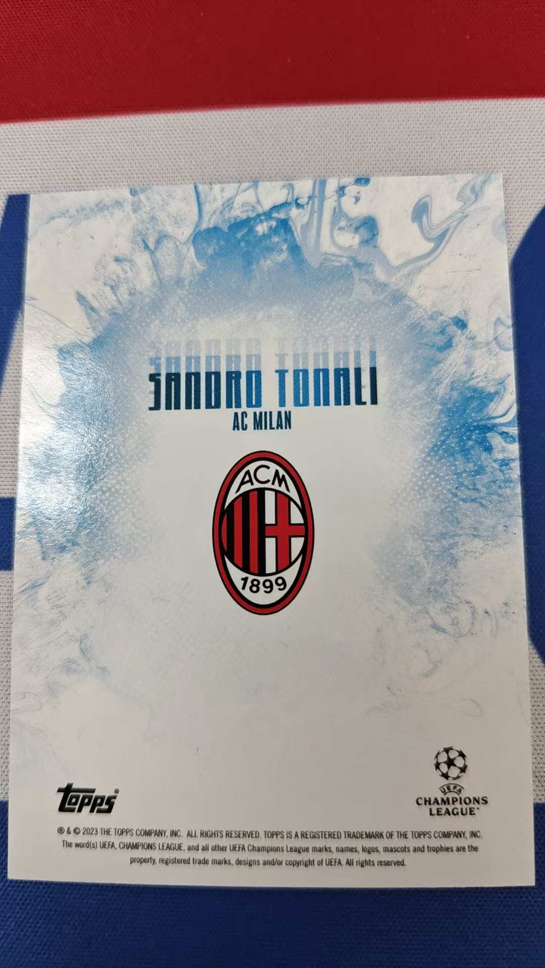 2023 Topps 穆夏拉白金盒 Sandro Tonali 欧冠 桑德罗 托纳利 签字 49编 蓝折 意大利国脚 ac米兰 纽卡斯尔联