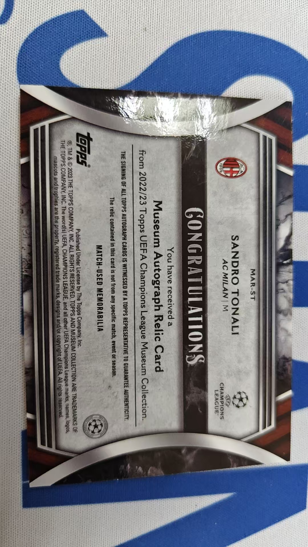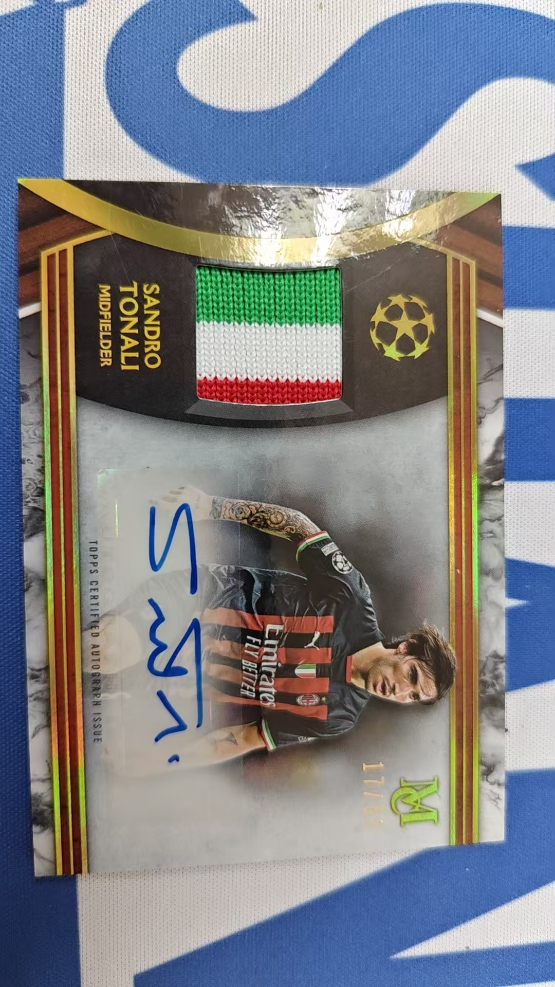 2023 Topps 博物馆 Sandro Tonali MUSEUM 托纳利 签字 50编 金折 三色切割 国旗配色 落场球衣 match worn AC米兰 纽卡斯尔联 意大利 欧冠 博物馆