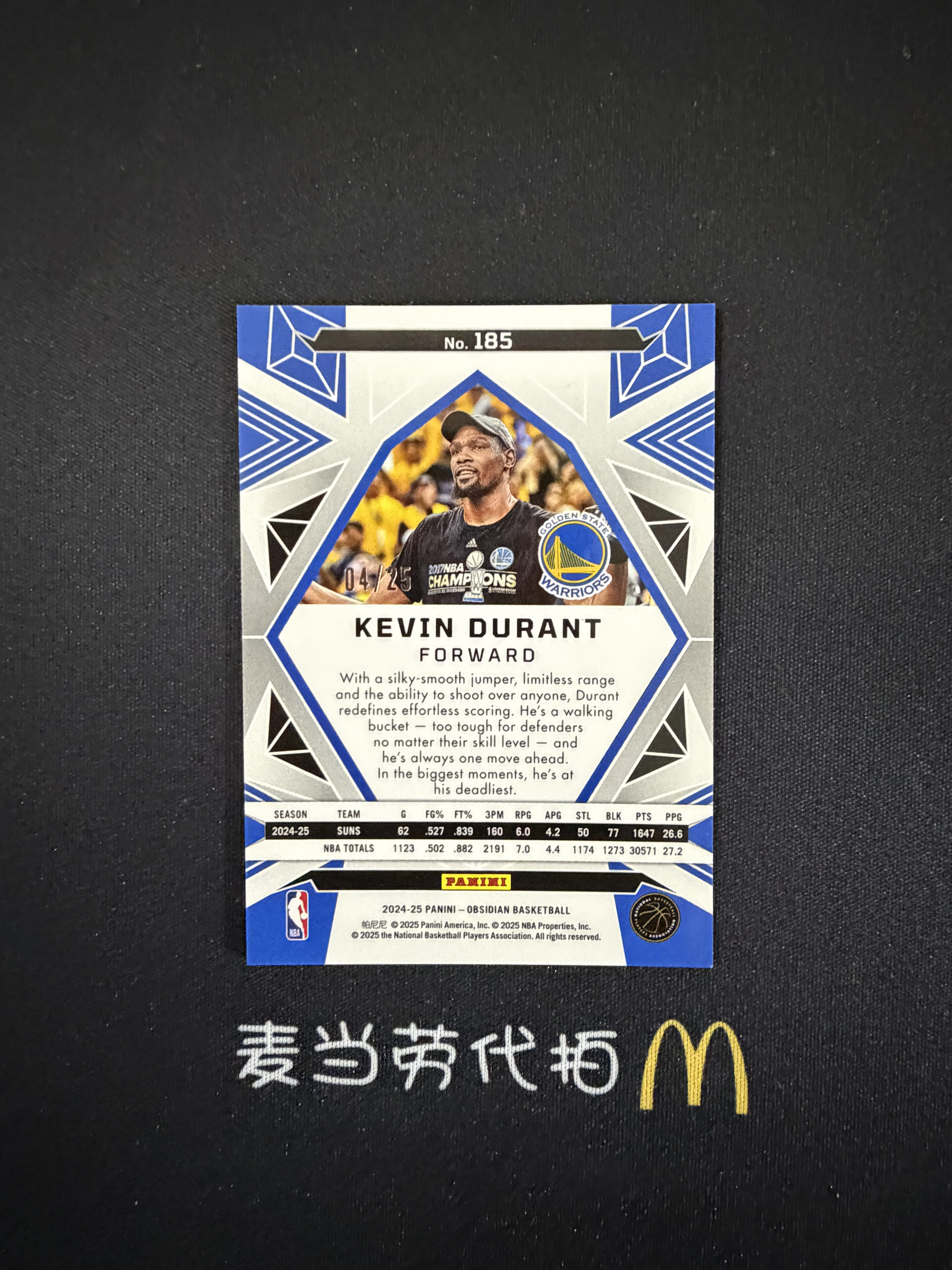2024-25 Panini Obsidian Kevin Durant 24-25 黑曜石  勇士队  凯文杜兰特  25编  绿折 捧杯 选图 低编  收藏凑套必备