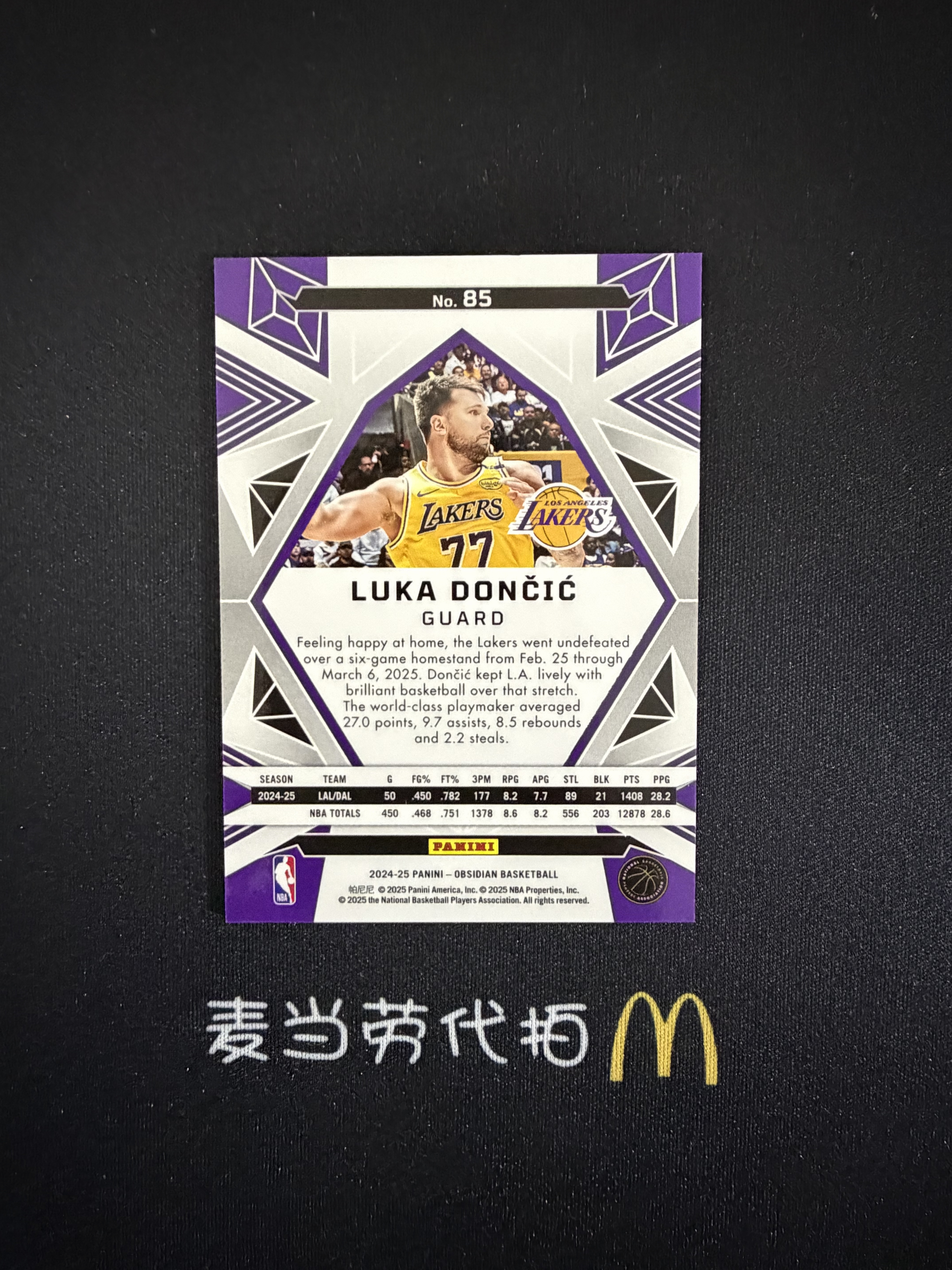 2024-25 Panini Obsidian Luka Doncic 24-25 黑曜石 湖人队 卢卡东契奇 77 Base 湖人皮 联盟门面 收藏凑套必备