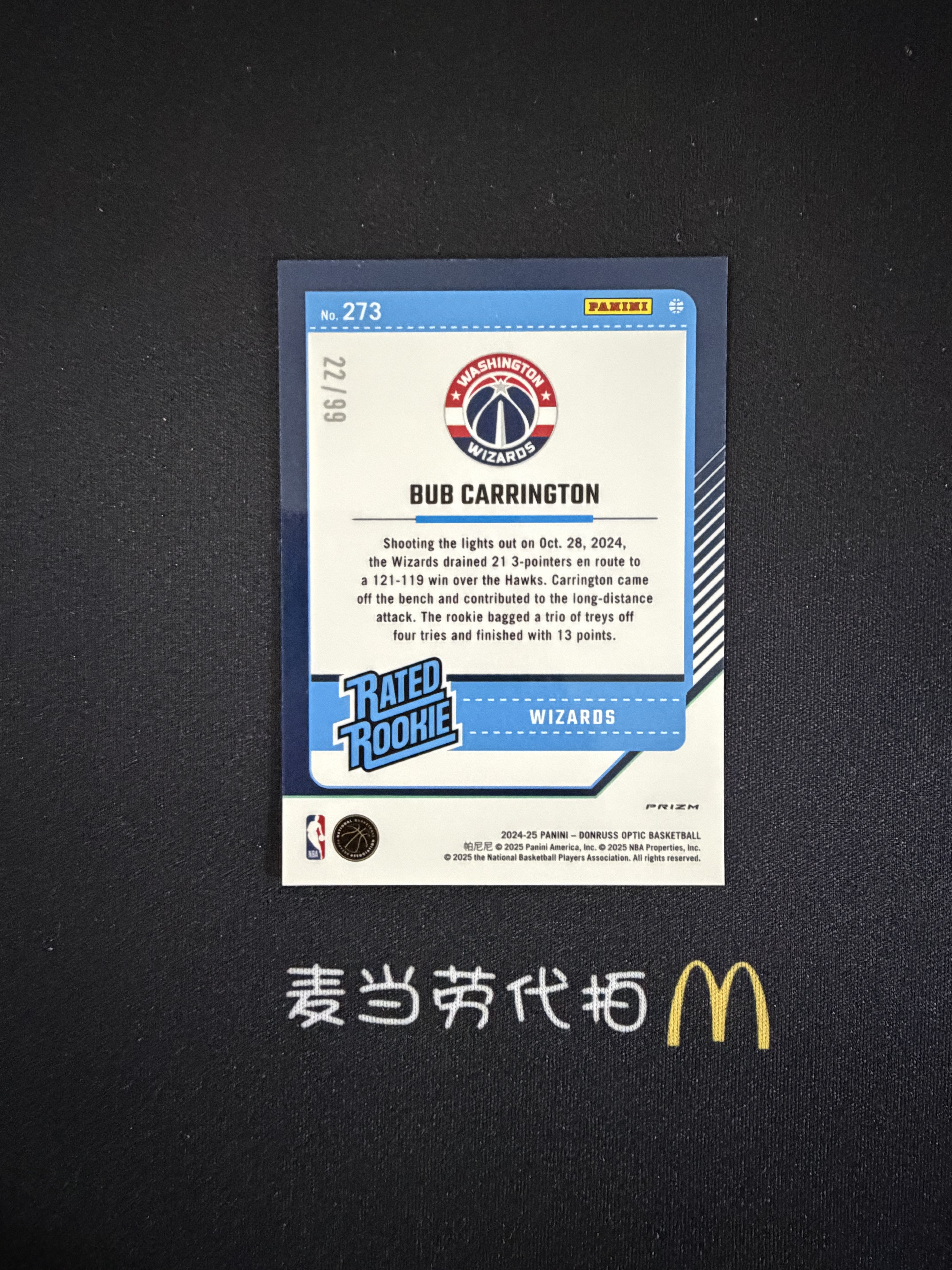 2024-25 Panini Optic Bob Carrington RC 24-25 Optic 奇才队 卡灵顿 新秀 99编 红金折 高顺位新秀 未来可期