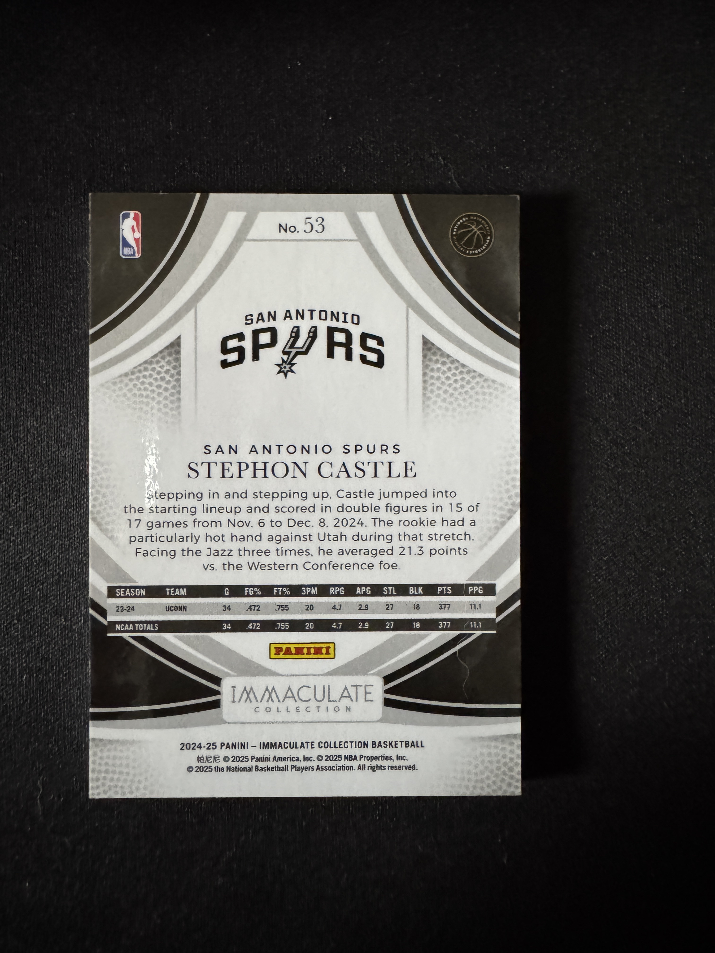 2024-25 Panini Immaculate Stephon Castle RC IMM 马刺 新秀 斯蒂芬 卡斯尔 25/25 编 尾编 Base 蓝平行 微瑕 不保卡品