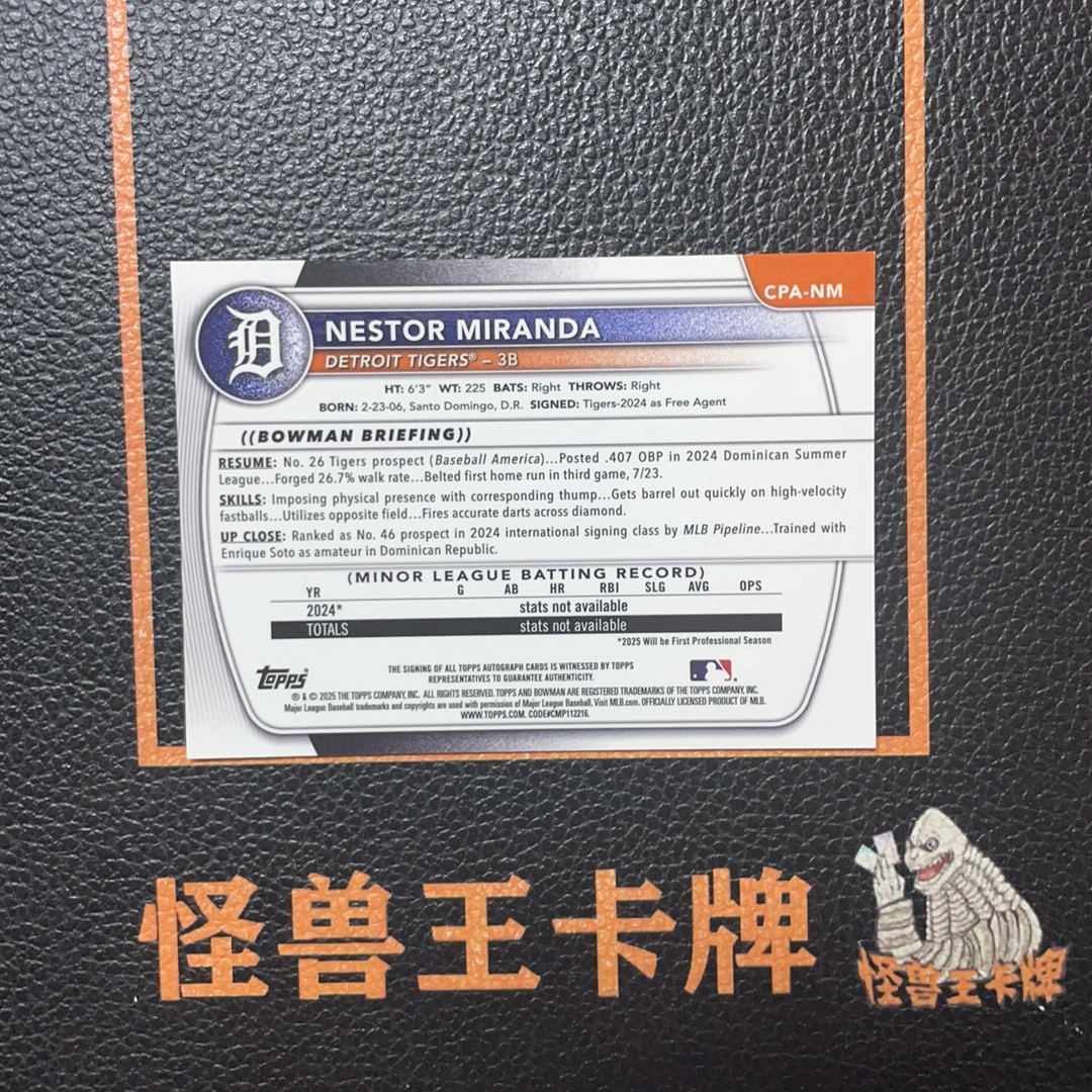 (怪兽拍卖) GSW-C53 2025 Topps Bowman Chrome Nestor Miranda RC 新秀 1st 卡签 签字 内斯特 米兰达 底特律老虎 第二张