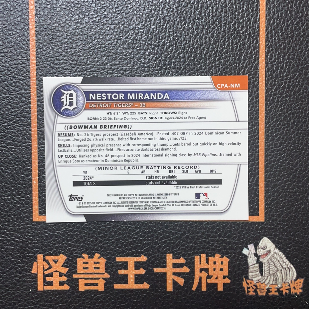 (怪兽拍卖) GSW-C53 2025 Topps Bowman Chrome Nestor Miranda RC 新秀 1st 卡签 签字 内斯特 米兰达 底特律老虎 第三张