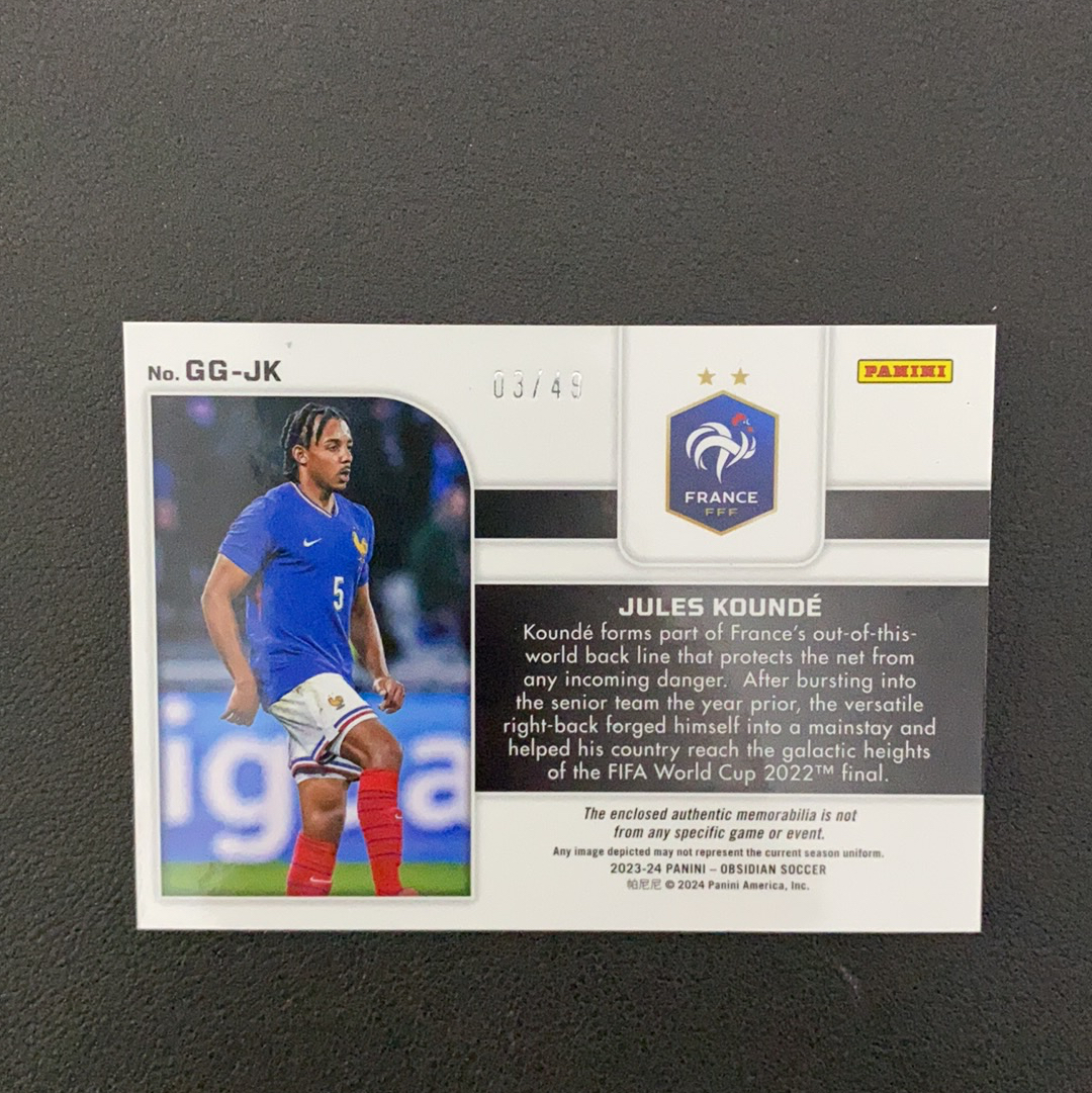 2023-24 Panini Obsidian Jules Koundé 黑曜石 孔德 巴萨 法国 球衣物料 49编 低编镭射 实卡精美 卡品如图 收藏必备 雪12