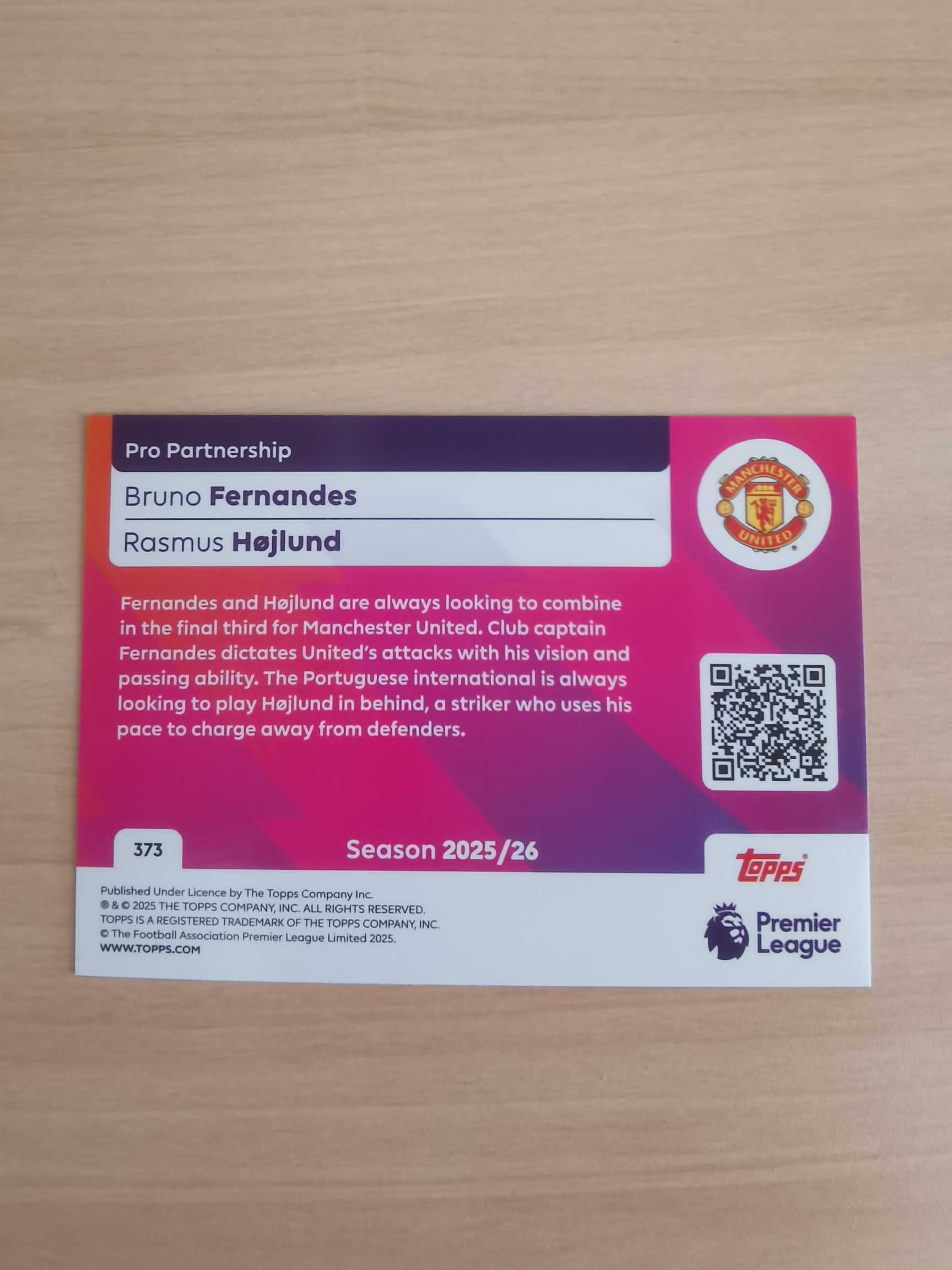 2025 Topps 英超 Bruno Fernandes 曼彻斯特联 曼联 B费 布鲁诺 费尔南德斯 Rasmus Hojlund 霍伊伦 双人 职业搭档特卡 银折 折射