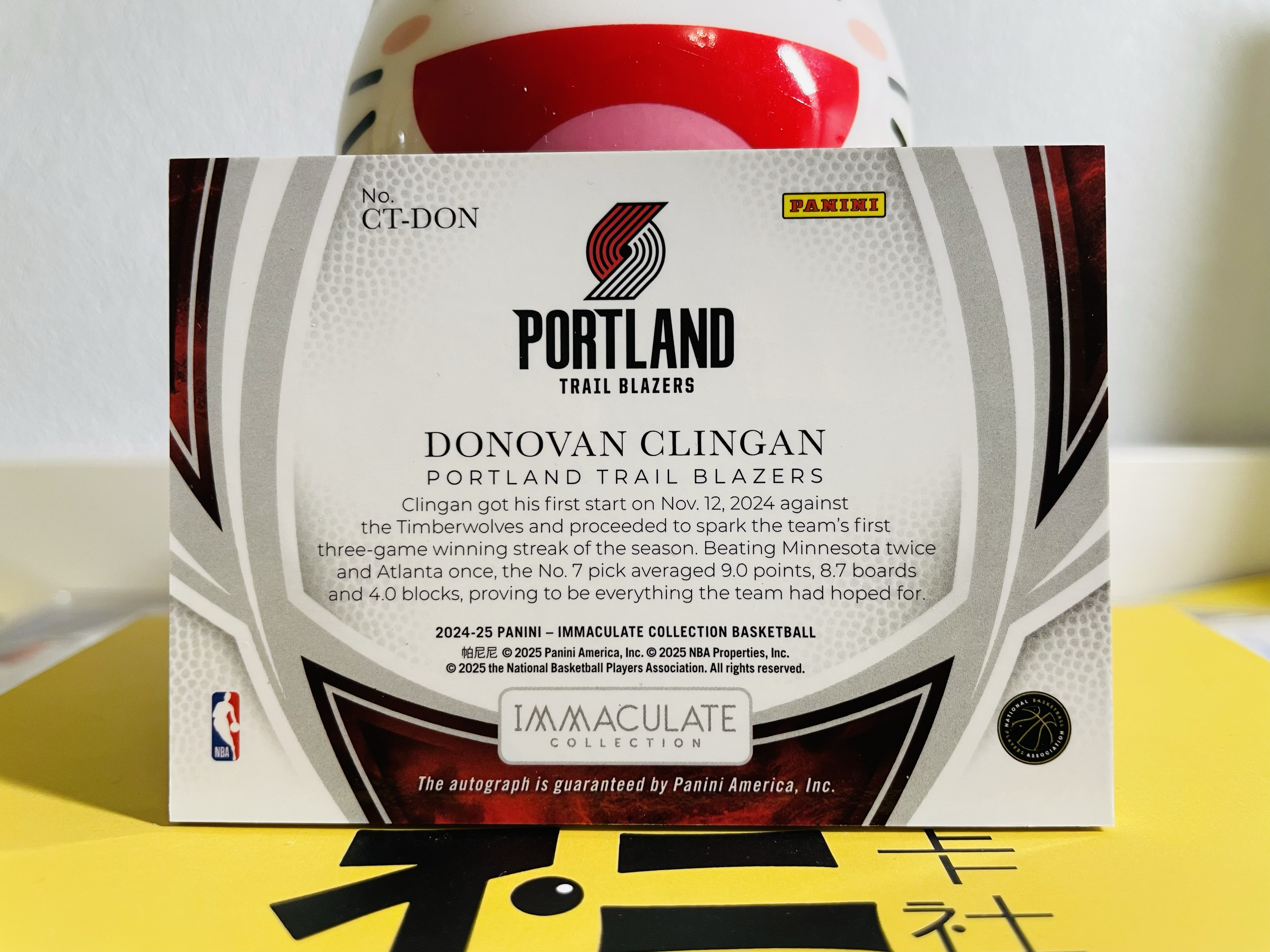 2024-25 Panini Immaculate Donovan Clingan RC 开拓者 新秀 克林根 55/99 Clutch Time 关键时刻 签字 卡签 卡品如图