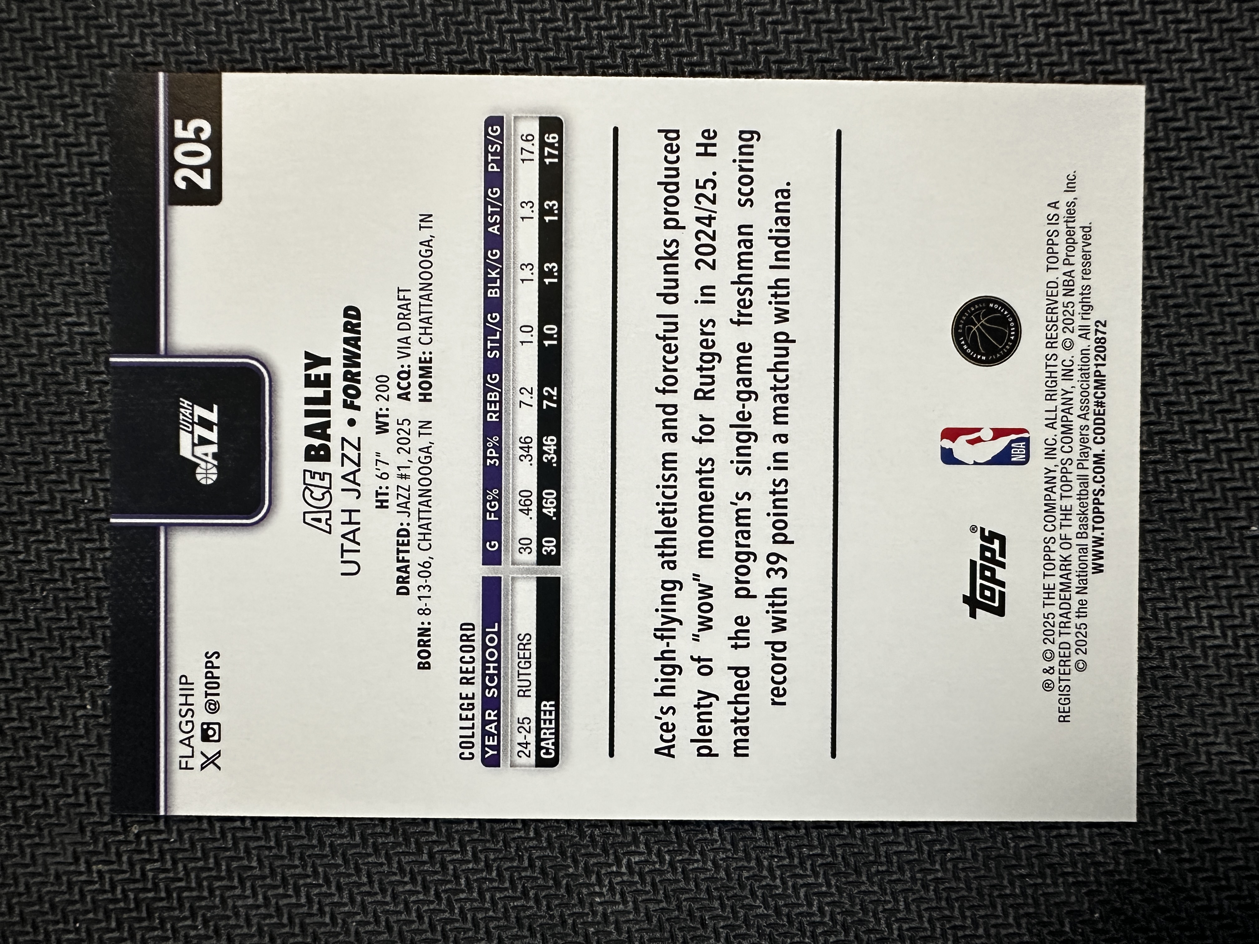 2025 Topps Topps Ace Bailey RC 爵士 新秀 ACE 贝利 base 篮网折 手雷 独占 holo 卡品如图