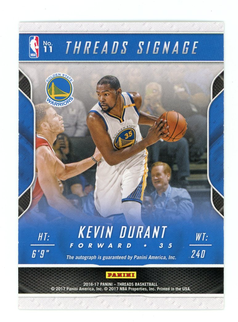 2016-17 Panini Threads Basketball Kevin Durant Threads Signage Auto #'ed 01/99