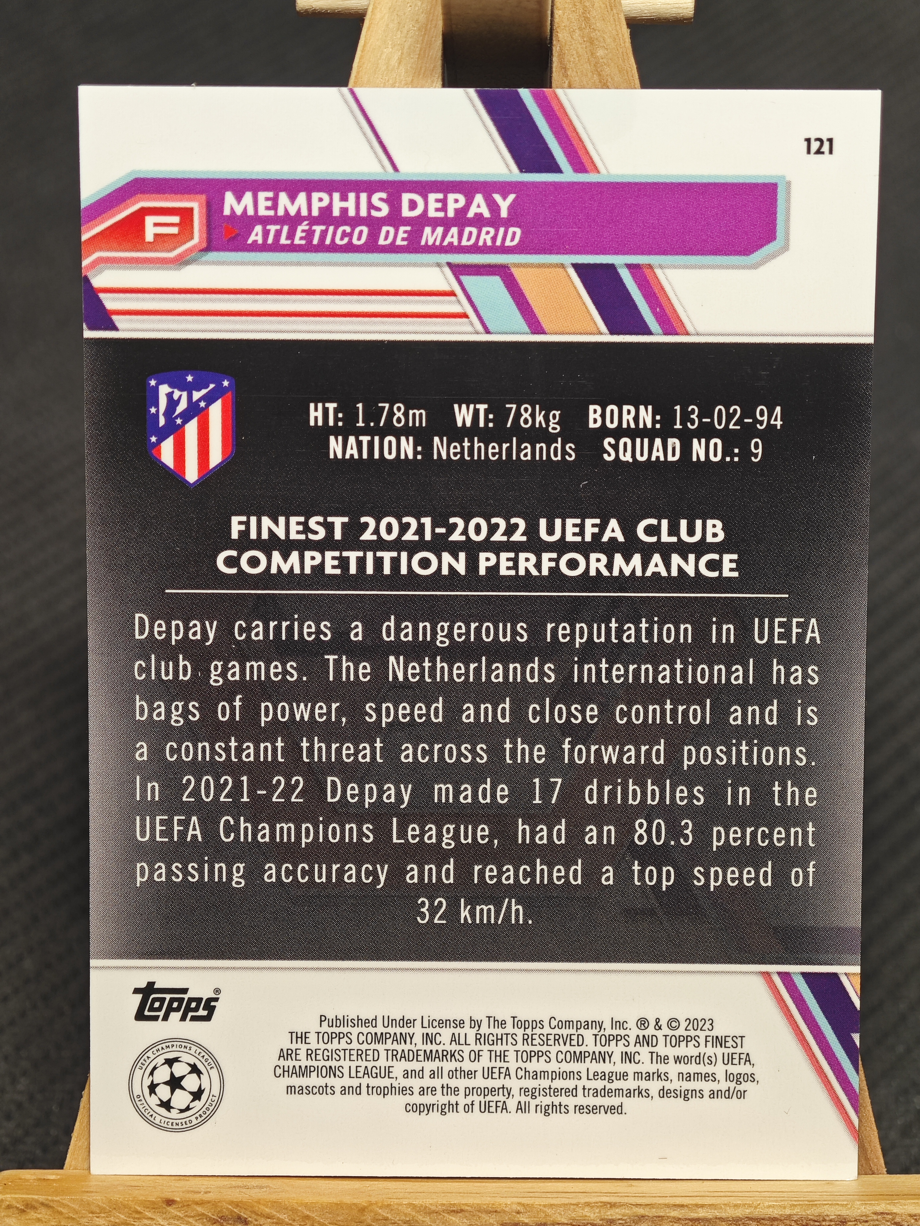 2023 Topps Finest Memphis Depay 欧战Finest 马竞 荷兰 埃因霍温 德佩 39/75编 玫瑰金折射 xx