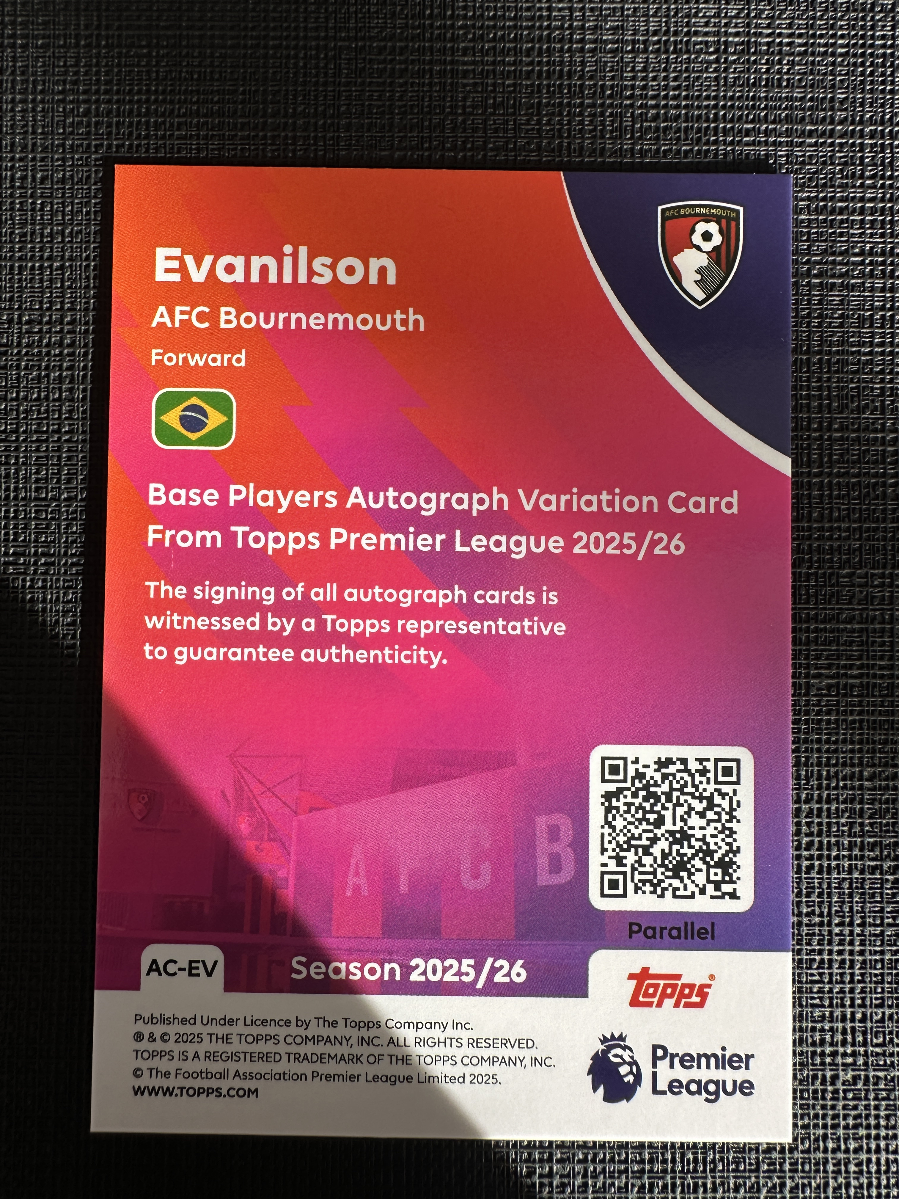 2025 topps premier 英超 埃万尼尔森(Evanilson)  波尔图 伯恩茅斯 签字 /150编 蓝折 【默认微瑕一日一快递 不累计 不发到付】卡卡z