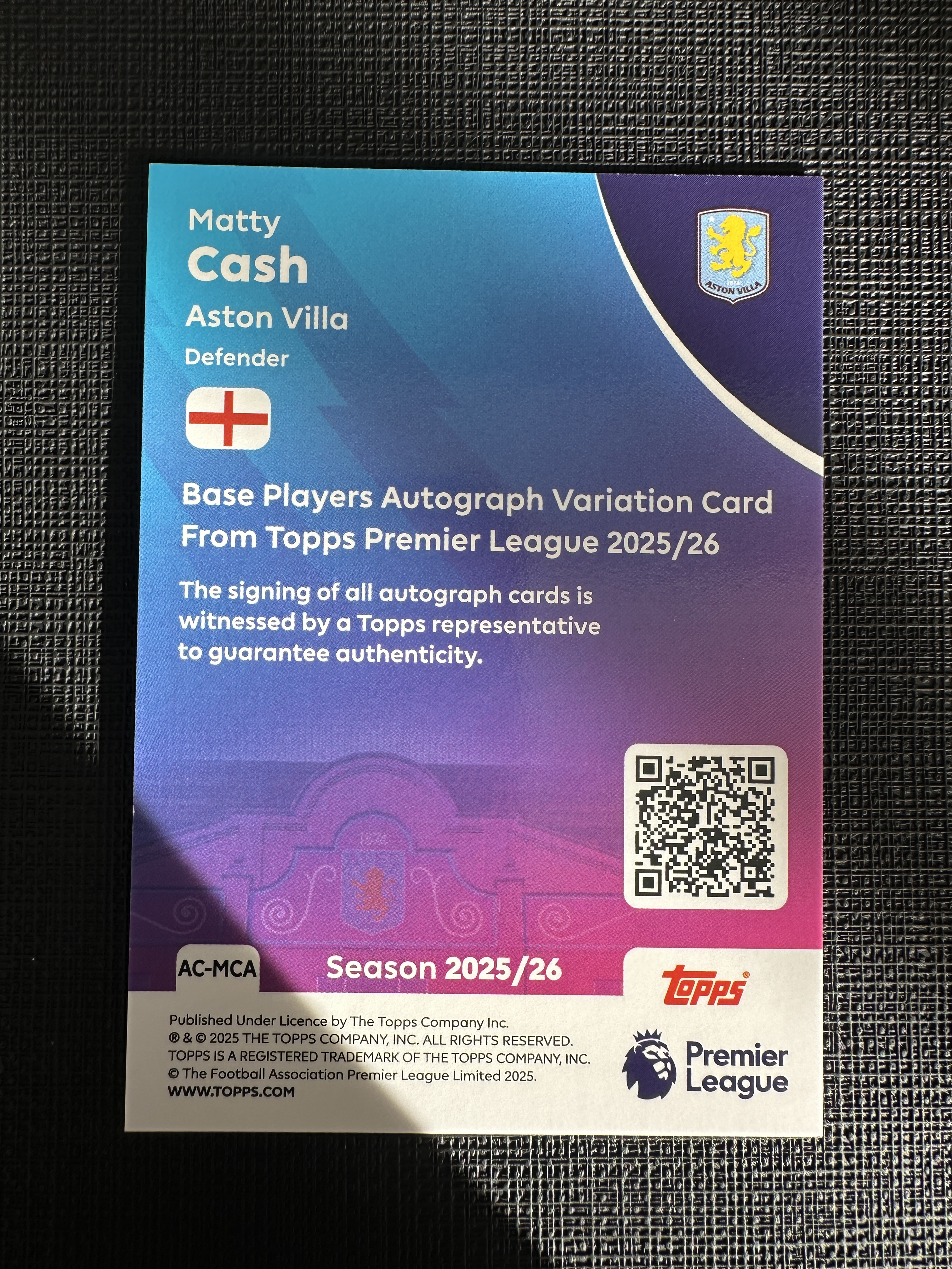 2025 Topps Premier Matty Cash Matty Cash 马蒂 卡什 英超 签字 阿斯顿维拉 魔笛【默认微瑕一日一快递 不累计 不发到付】卡卡z