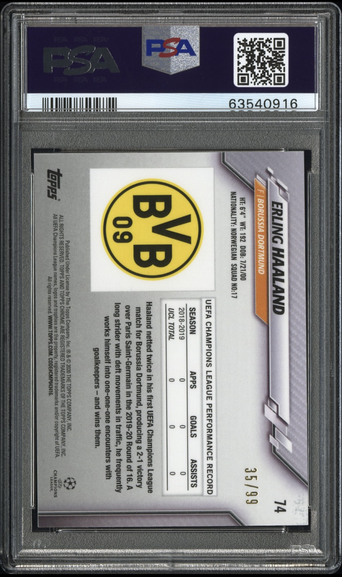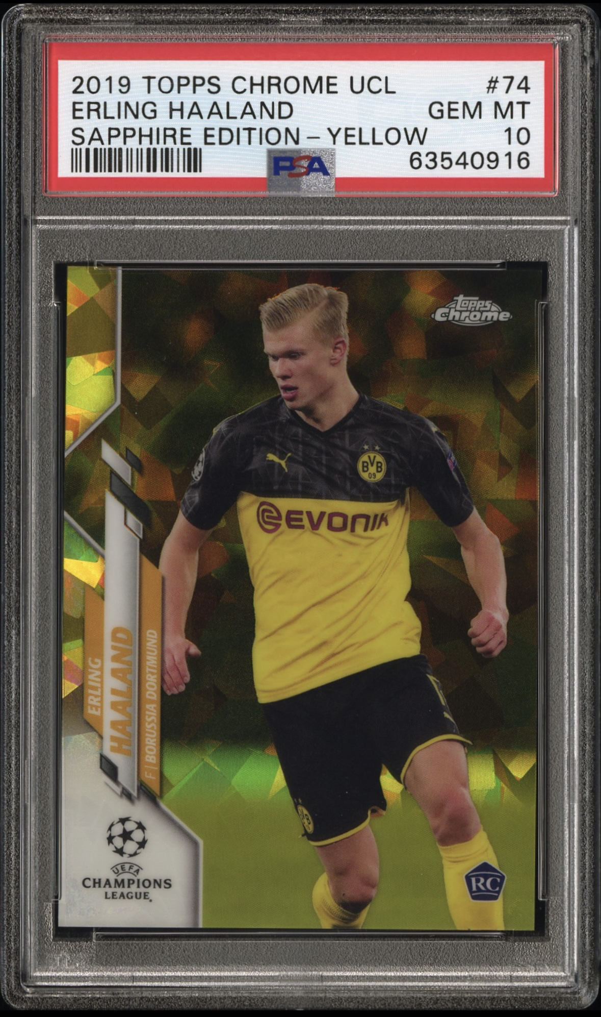 【微微辣寄售】七间10.30 2019-20 Topps Chrome 欧冠TC蓝宝石 ERLING HAALAND RC 多特蒙德 新秀 哈兰德 黄碎冰折 99编 PSA10分评级 挪威曼城