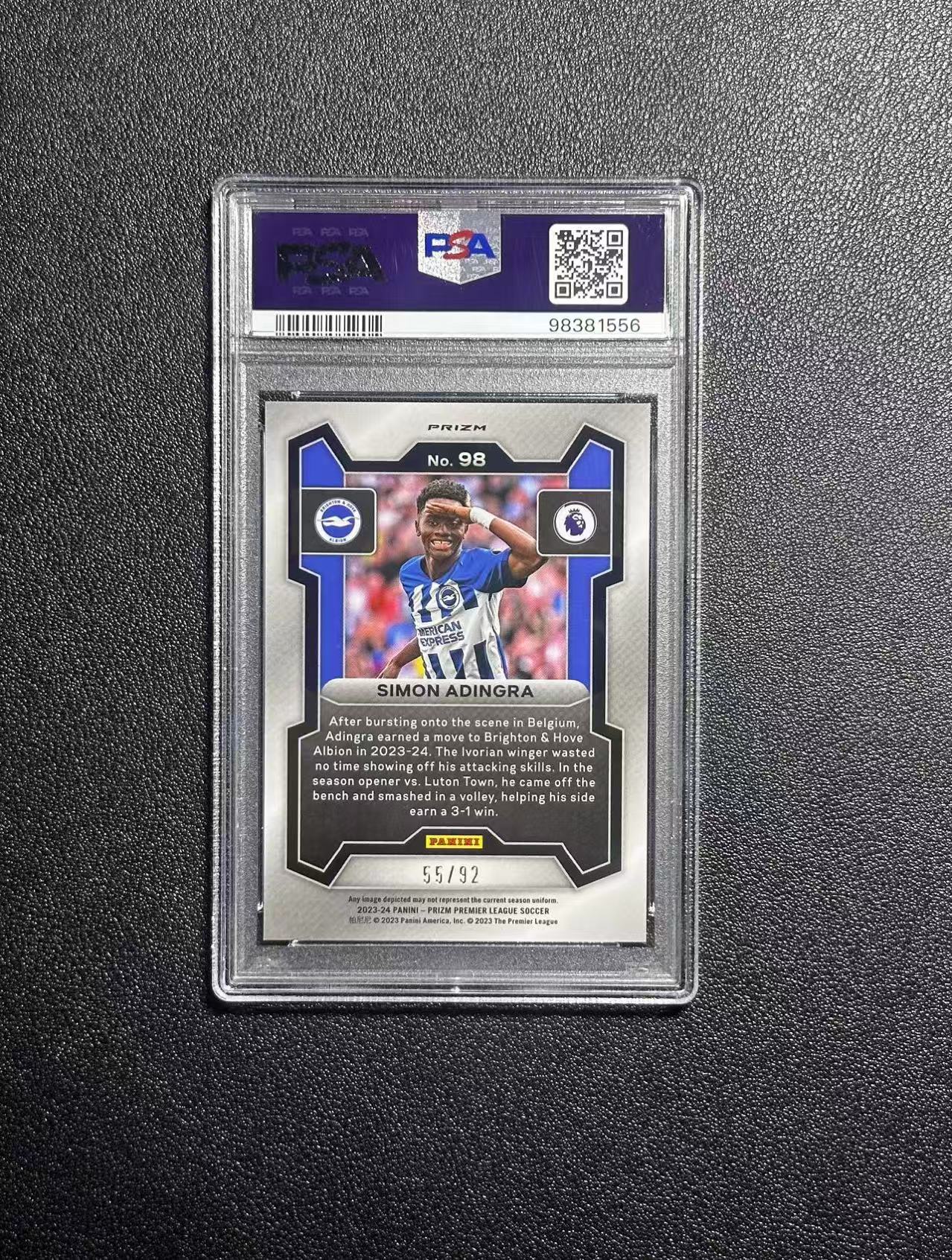 【一支鼎】2023-24 Panini Prizm P/L Simon Adingra 英超PZ 新秀RC 布莱顿 科特迪瓦 阿丁格拉 92编 白紫折 PSA10分评级