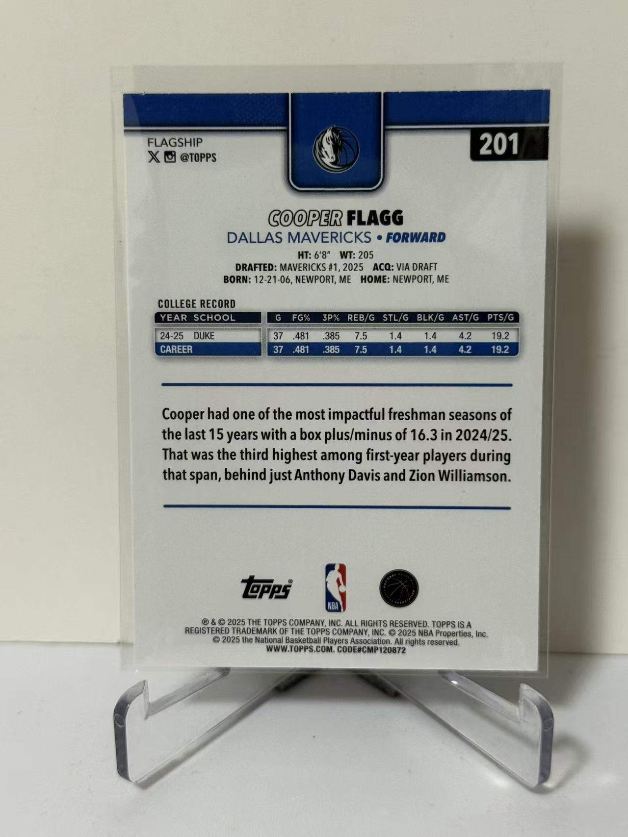 2025 Topps Flagship Cooper Flagg RC 独行侠 库珀 弗拉格 新秀 状元 base 美国之子 不保卡品 收藏必备 卡品如图 9527