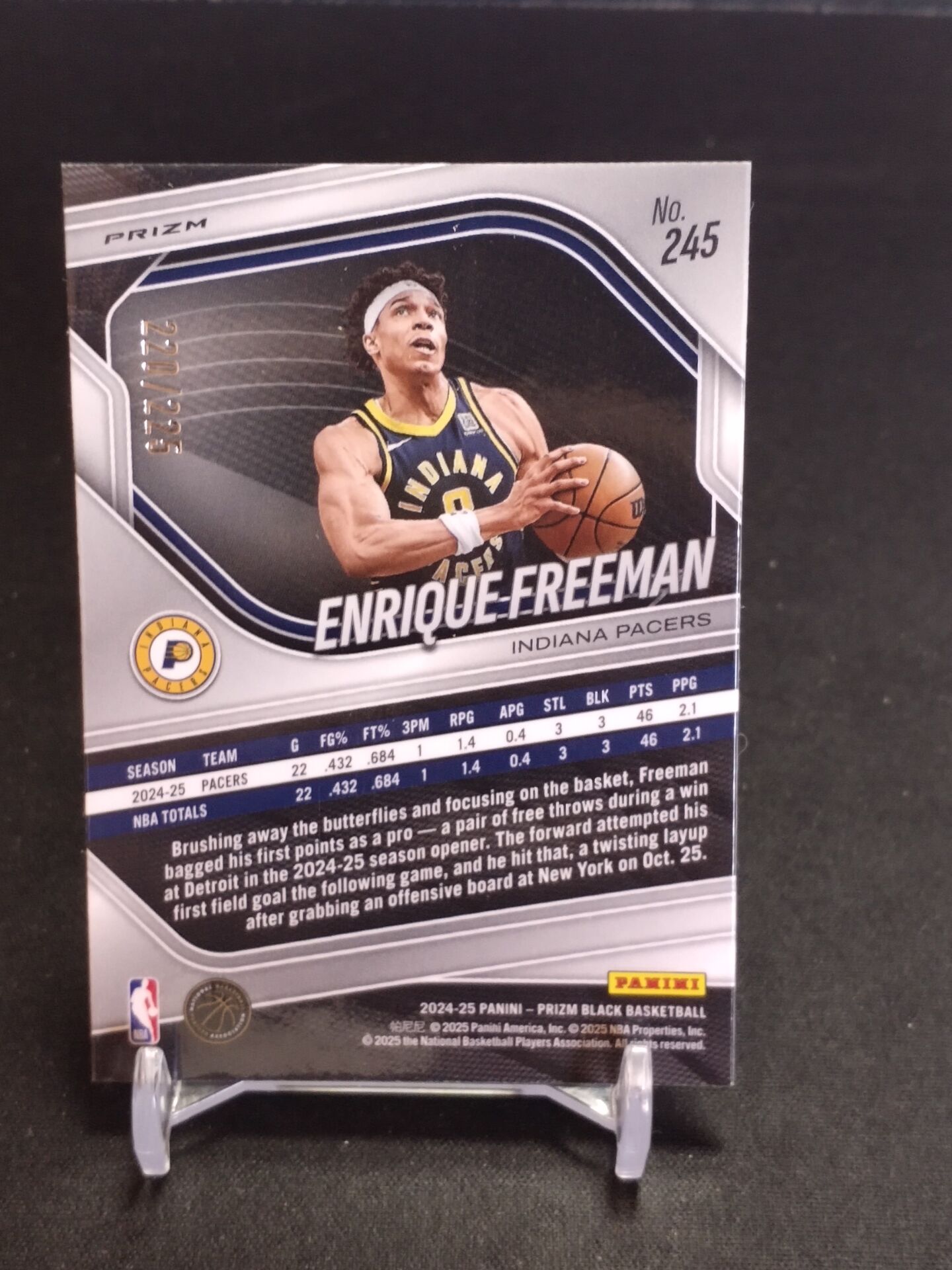 【浩行拍卖 截标预付82%】2024-25 panini prizm black enrique freeman 步行者 恩里克 弗里曼 rc 新秀 球皮折 折射 220/225编 专收必备 瑕疵看图「做法」1030P02緲