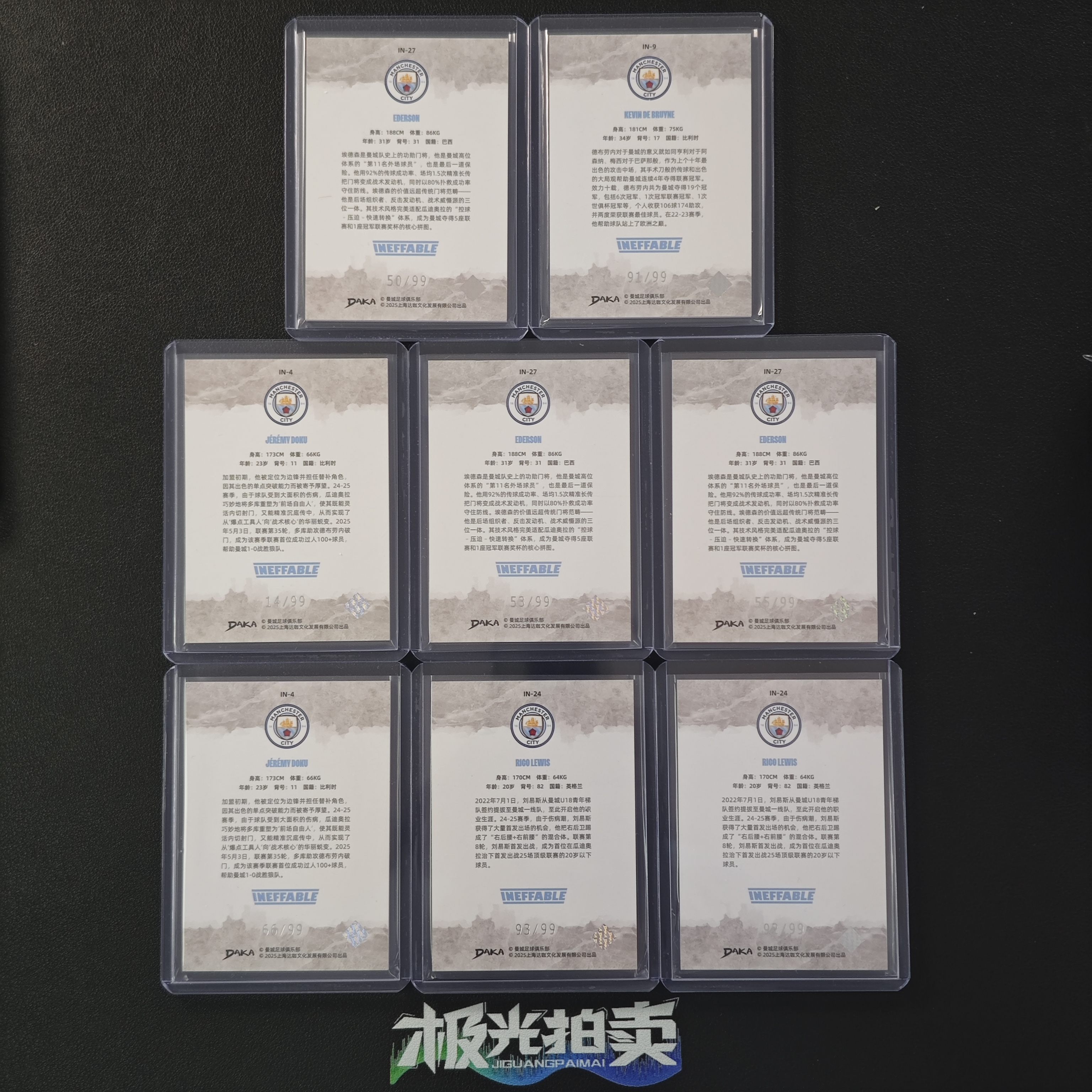 2024-25 DAKA 曼城队盒 Kevin De Bruyne 达咖 德布劳内 埃德森 多库 里科刘易斯 99编 紫平行 八张打包不保卡品 实卡精美 收藏必备 w WG166