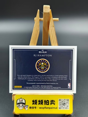 2.参拍:卡品墨迹如图所示(厚卡异形卡等都有正常白边白角,部分系列会有特殊瑕疵),请认真看图后再谨慎出价。不接受任何艺术家买卡,如拍到卡后有任何艺术家行为(包括但不限于在通行卡品里挑瑕疵索要赔偿或退卡等)一律拉黑投诉处理。所卖卡未经描述均为通行品,可能会有细微瑕疵;打包标小卡可能会有不同程度的瑕疵,不保障卡品;评级卡壳和原封砖的磨损不包含在卡品范围内;多张上拍卡品通行的同款卡片随机发货。竞拍前可以私聊要细节图,成交后再以有瑕疵、勿拍等理由退卡的一律拒绝,介意者请勿参拍!参拍即视为已读同意!