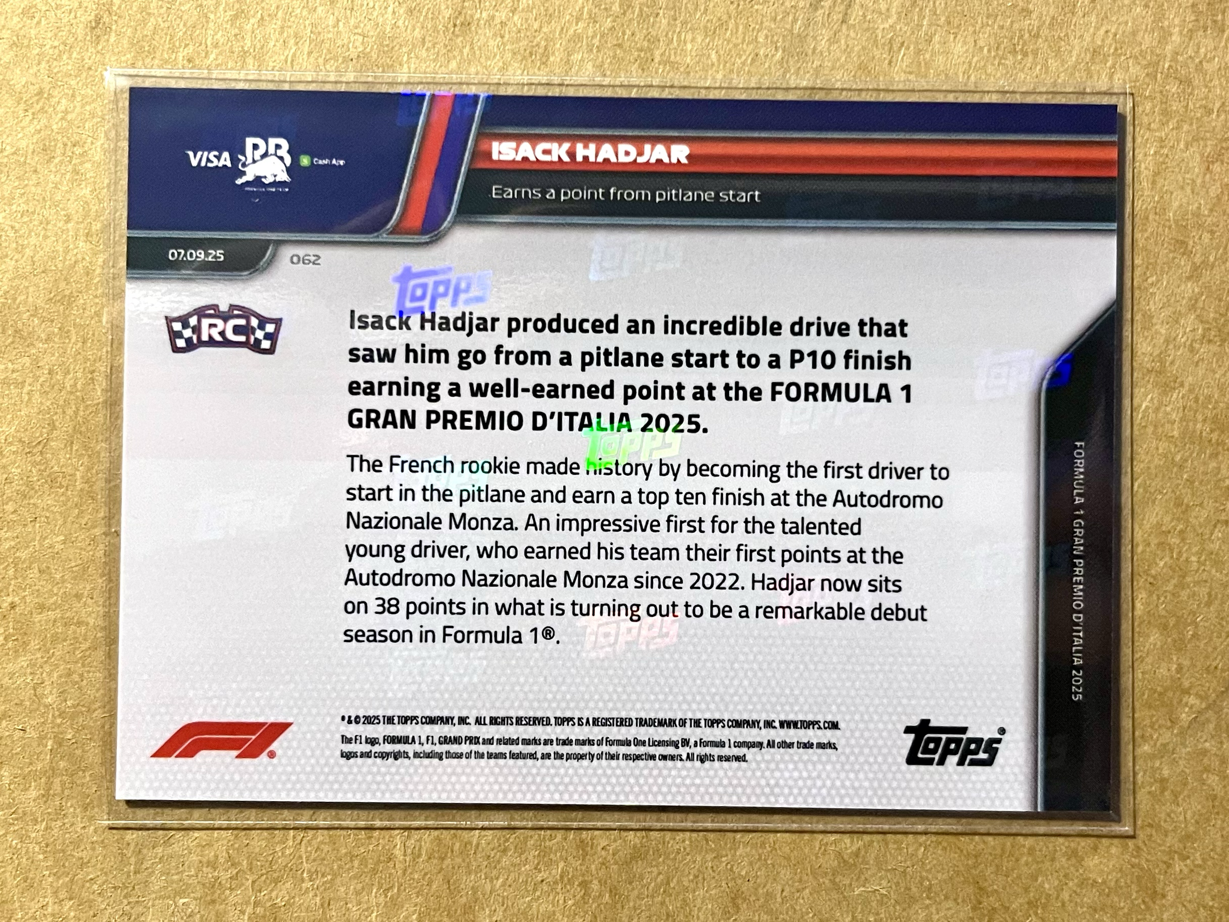 2025 Topps 【蓝矿】 Isack Hadjar 伊萨克·哈贾尔 RC新秀标 Topps now系列 F1 75周年 意大利站 小红牛车队 从维修区起步依然获得积分