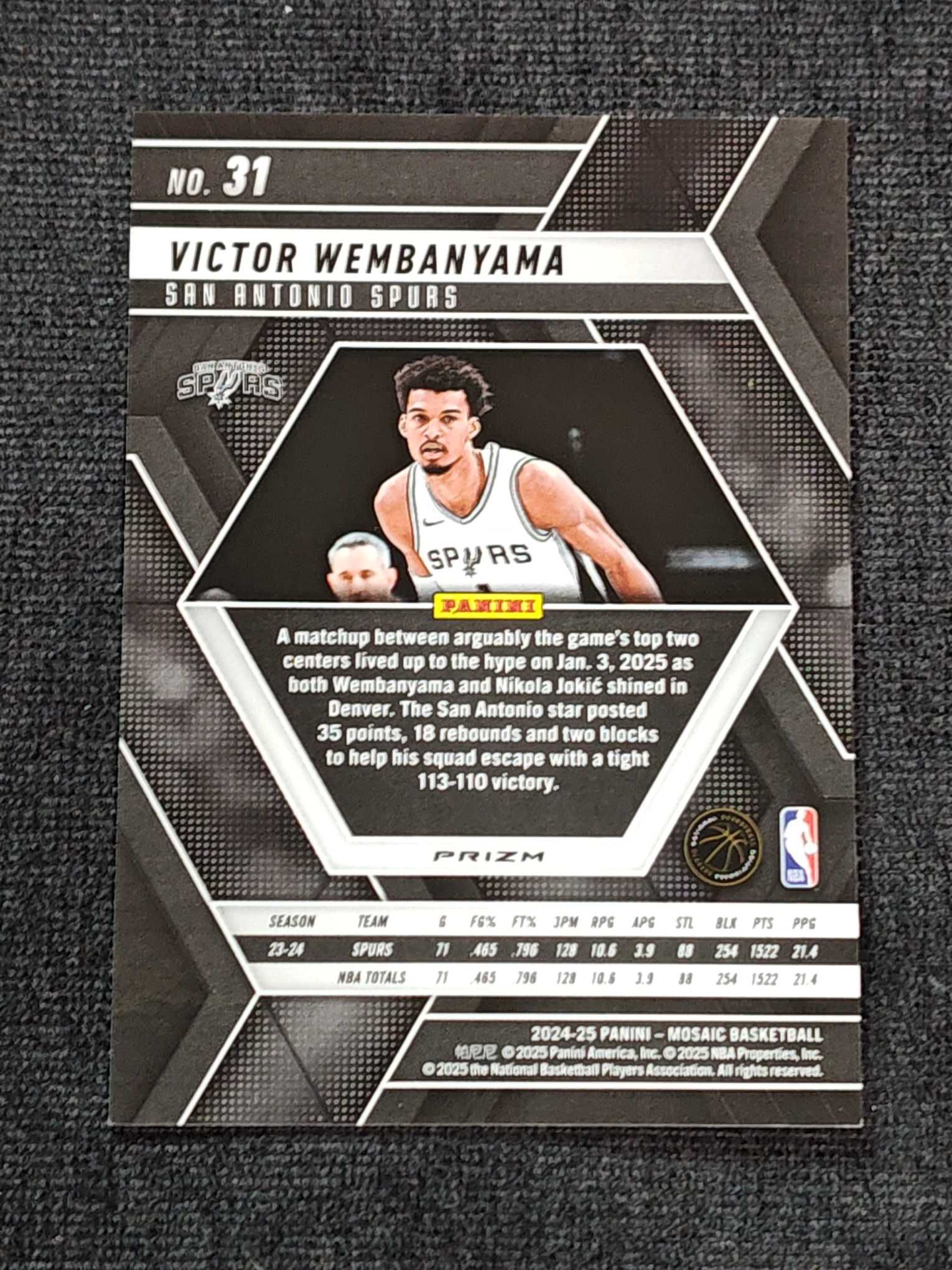 2024-25 Panini Mosaic Victor Wembanyama 马赛克 维克托 文班亚马 红折 马赛克 正base 次年 斑马 马刺 未来巨星 这赛季必定大爆发 投资趁早 卡品如图