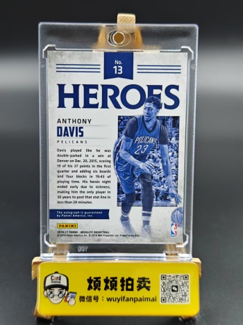 2.参拍:卡品墨迹如图所示(厚卡异形卡等都有正常白边白角,部分系列会有特殊瑕疵),请认真看图后再谨慎出价。不接受任何艺术家买卡,如拍到卡后有任何艺术家行为(包括但不限于在通行卡品里挑瑕疵索要赔偿或退卡等)一律拉黑投诉处理。所卖卡未经描述均为通行品,可能会有细微瑕疵;打包标小卡可能会有不同程度的瑕疵,不保障卡品;评级卡壳和原封砖的磨损不包含在卡品范围内;多张上拍卡品通行的同款卡片随机发货。竞拍前可以私聊要细节图,成交后再以有瑕疵、勿拍等理由退卡的一律拒绝,介意者请勿参拍!参拍即视为已读同意!