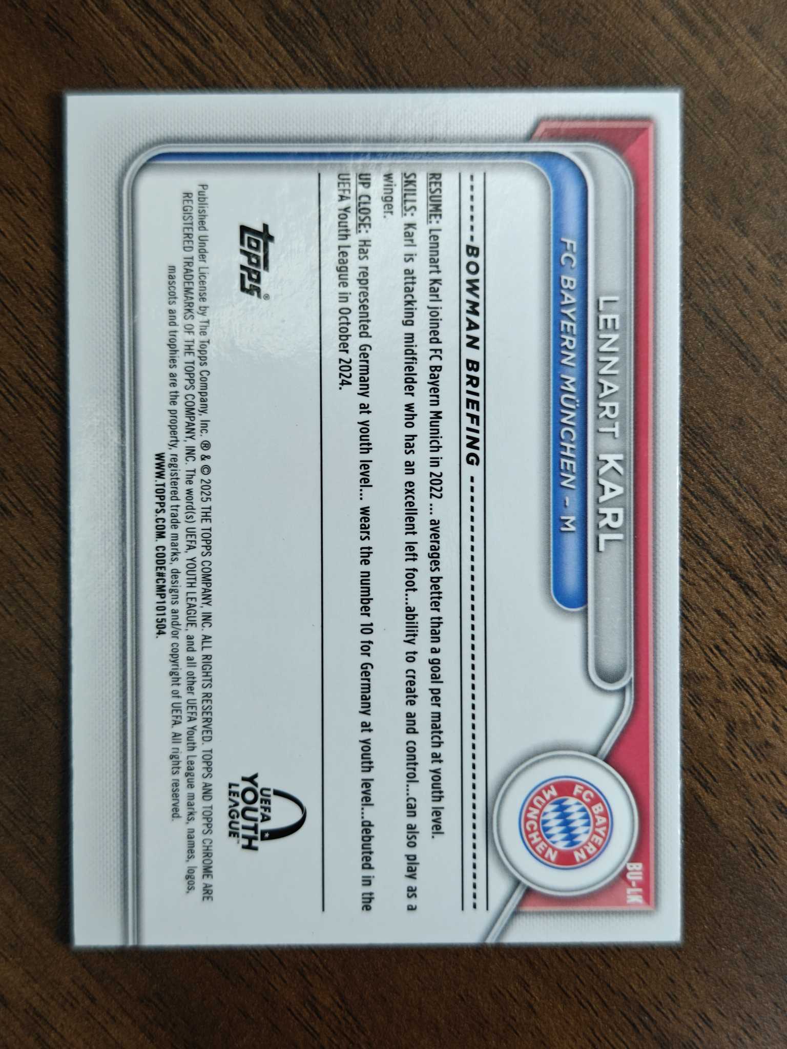 2025 Topps UEFA Champions League Lennart Karl RC 欧冠 Chrome 拜仁大热新秀 卡尔 RC银折 里贝里接班人 不保卡品默认瑕疵 介意勿拍 德国🇩🇪