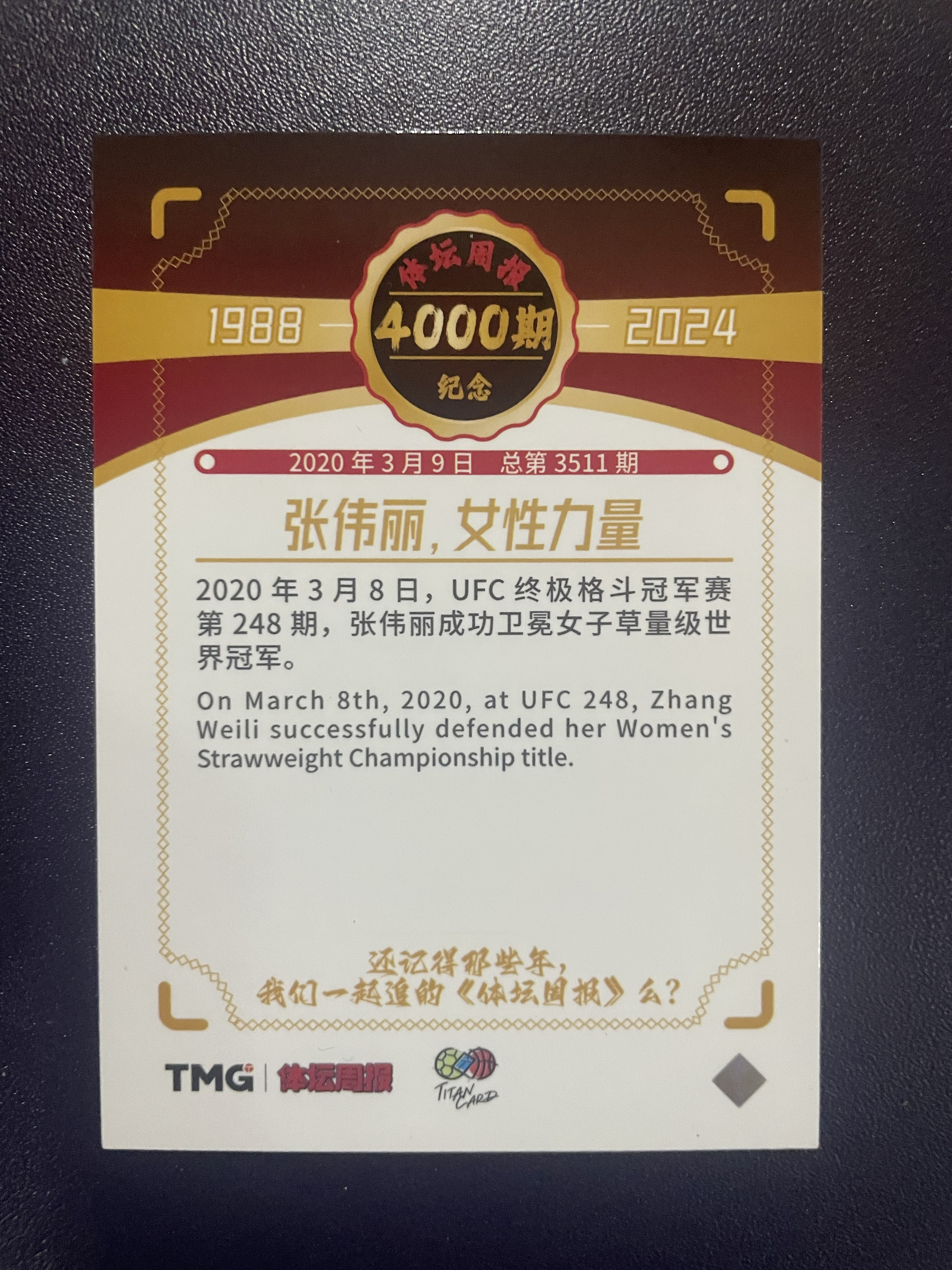 2024-25 TMG 体坛周报 Zhang Weili 张伟丽 女性力量 成功卫冕女子草量级世界冠军 细节如图不保卡品 玖玖