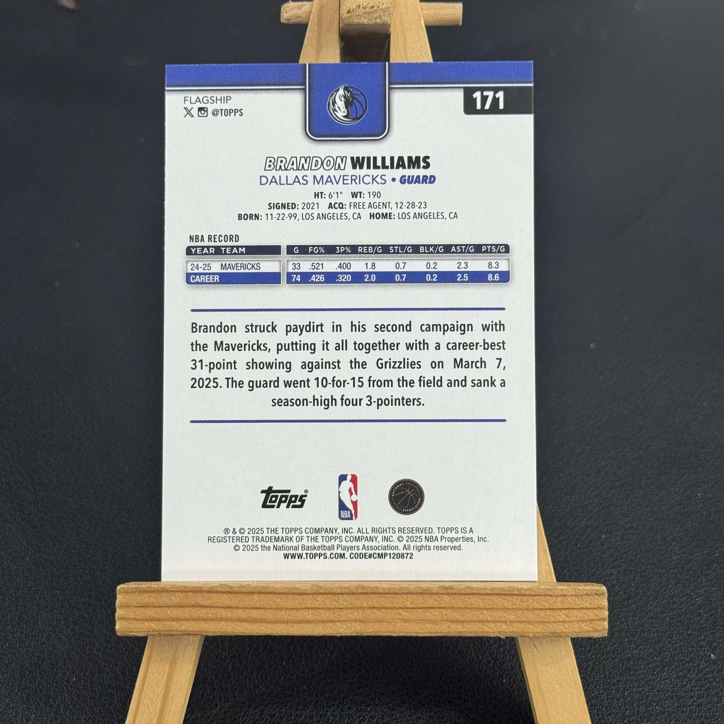 2025 Topps Flagship Brandon Williams 布兰登 威廉姆斯 独行侠 /2025编 弗拉格队友 卡品如图 鲍总
