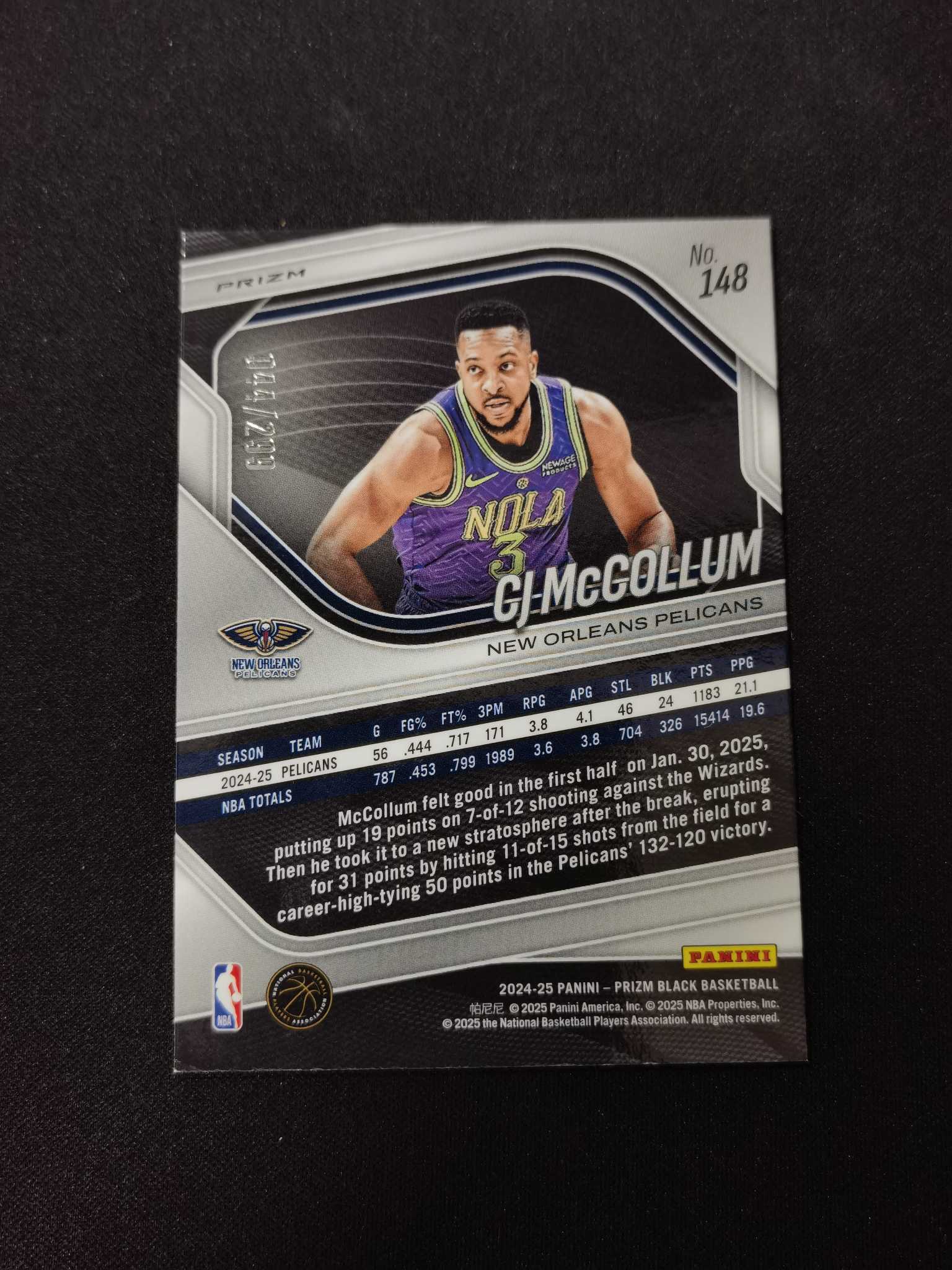2024-25 Panini prizm black CJ McCollum CJ麦科勒姆!帕尼尼末年绝唱,pz black系列299编红折!实卡超美,eBay有价,可搏psa高分!专收投资俱佳!