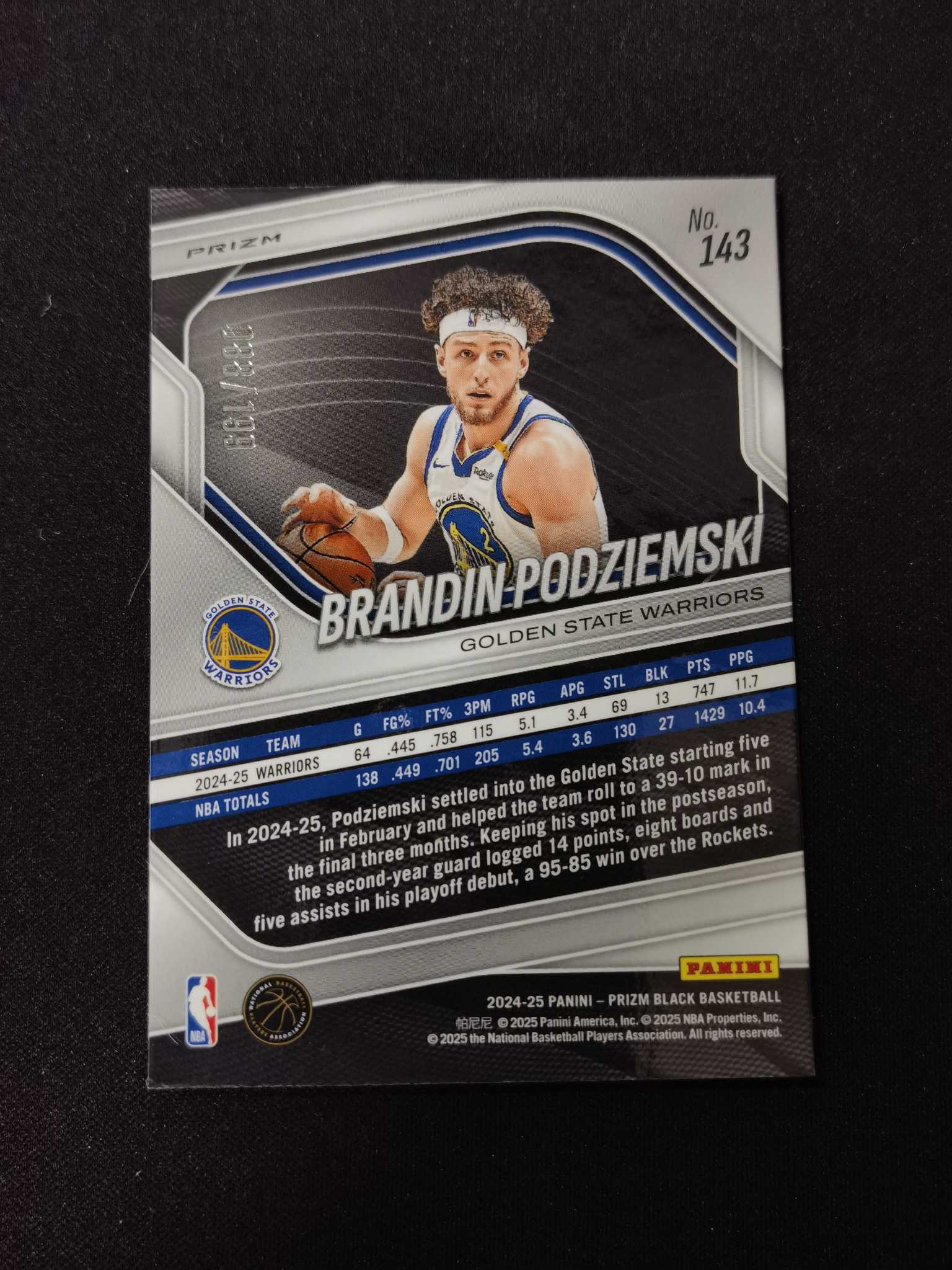 2024-25 Panini prizm black Brandin Podziemski 波杰姆斯基!帕尼尼末年绝唱,pz black系列199编蓝折colormatch!eBay有价,可搏psa高分