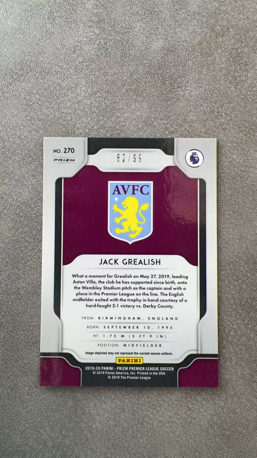 5815【330球星卡实体店代卖】2019-20 帕尼尼 PRIZM 英超 格拉利什 Jack Grealish 阿斯顿维拉 紫折 82/99编 仅顺丰寄付 (UK23)
