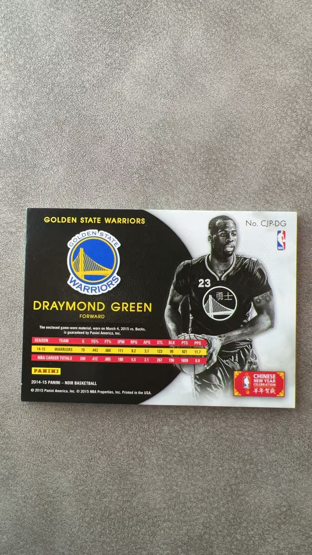5817【330球星卡实体店代卖】2014-15 帕尼尼 NOIR 德拉蒙德 格林 Draymond Green 勇士 07/25编 大窗球衣 PATCH GU落场 仅顺丰寄付 (UK23)
