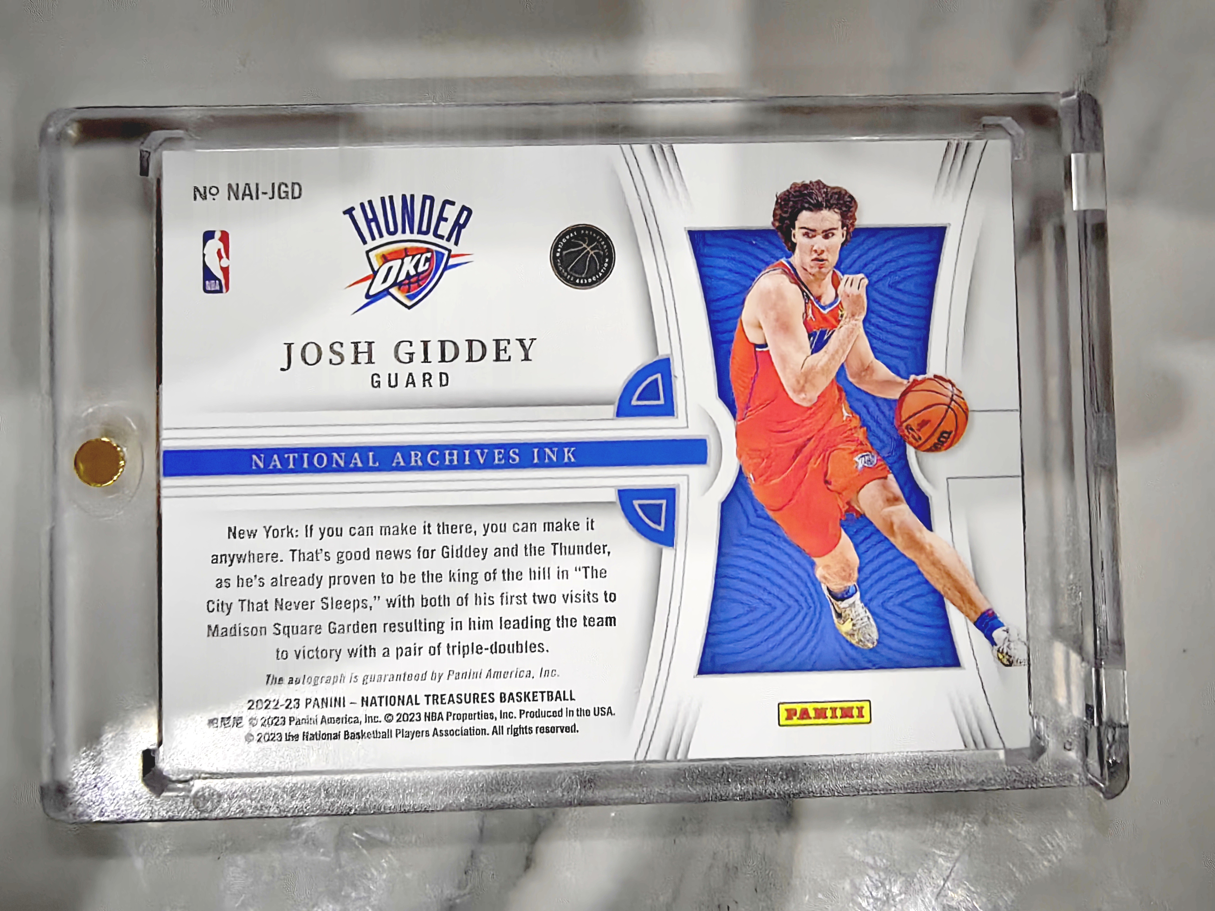 2022-23 Panini National Treasures Josh Giddey 约什 吉迪 国宝高端系列 签字 卡签 66/99编 肖像 影子签 雷霆队 组织核心 亚历山大队友 吉迪 带砖
