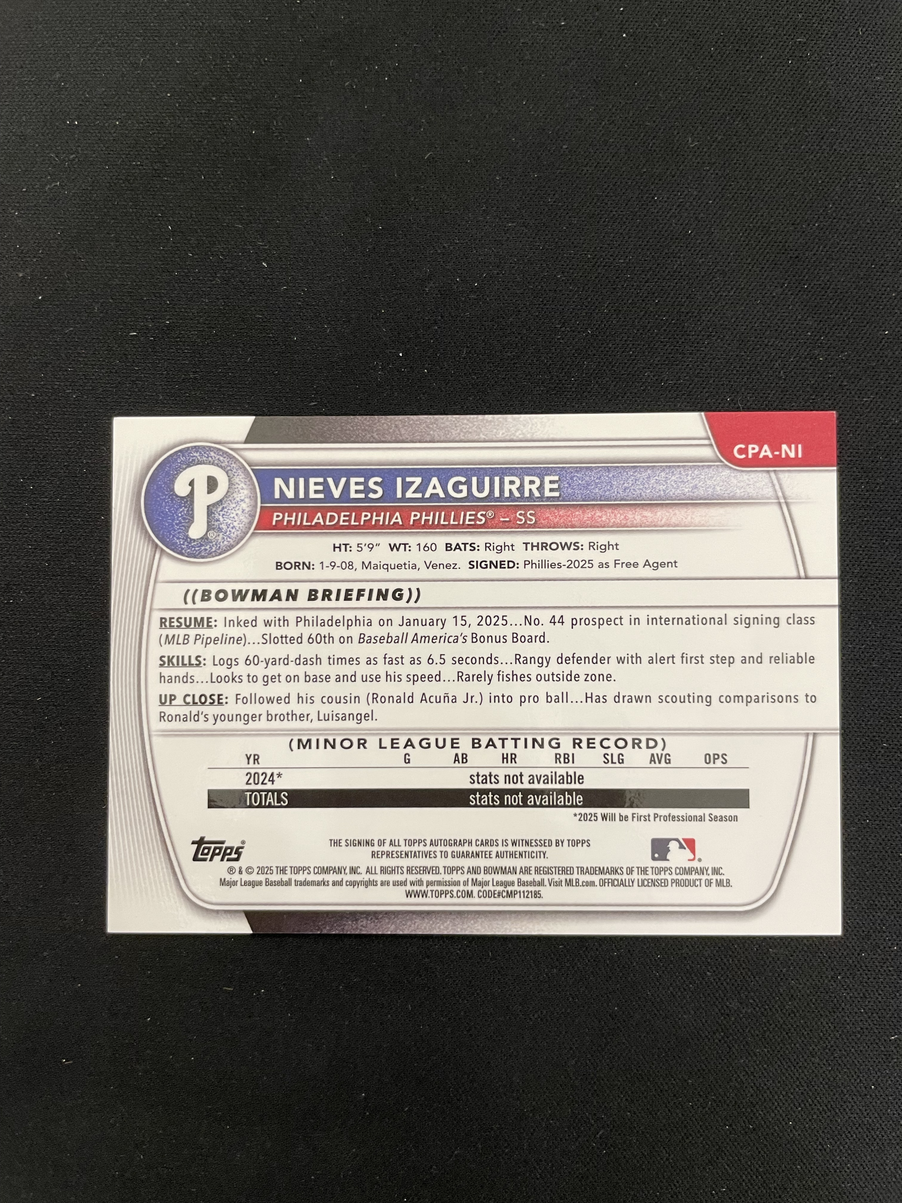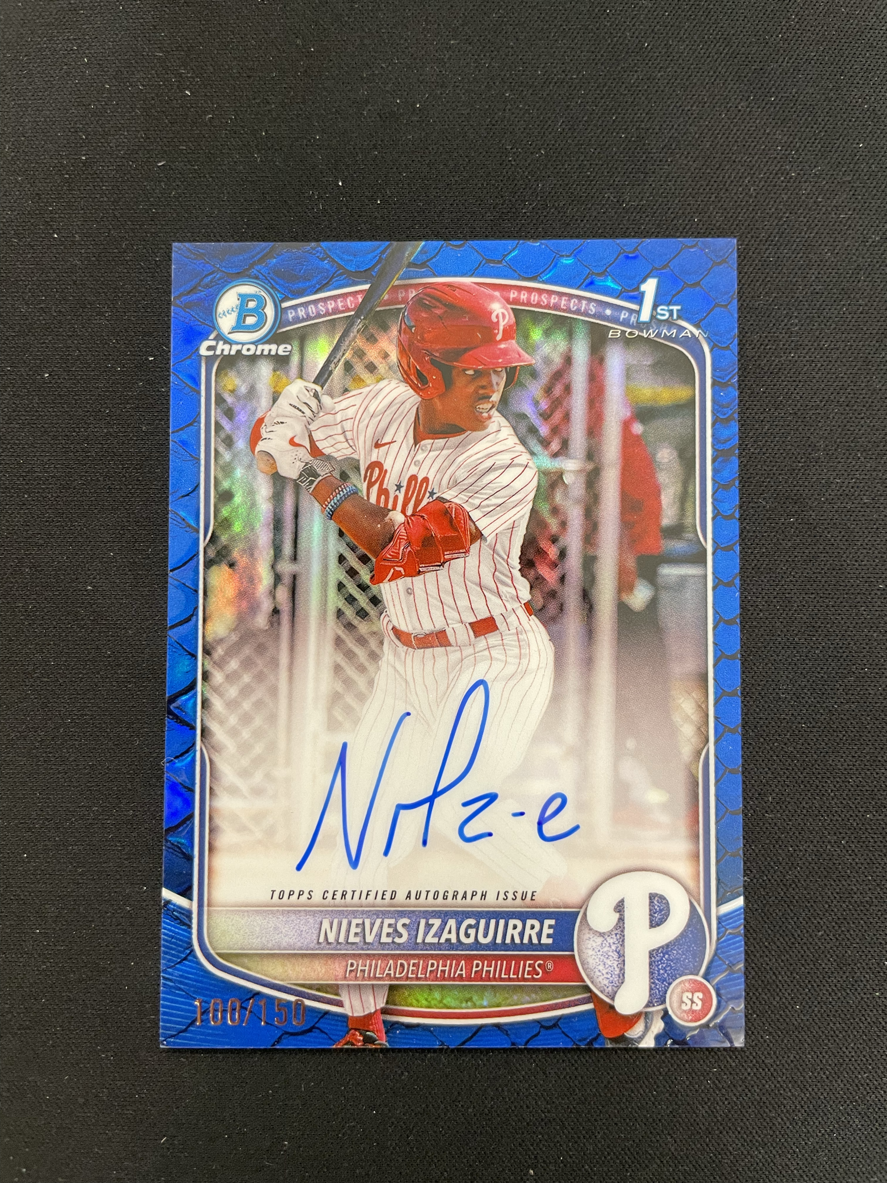 2025 Topps Bowman Nieves Izaguirre 1st 费城费城人队 球队大物 游击手 08年年小将 反应速度极快 150编 蓝折 卡签。彭彭拍卖(品见大图)冰