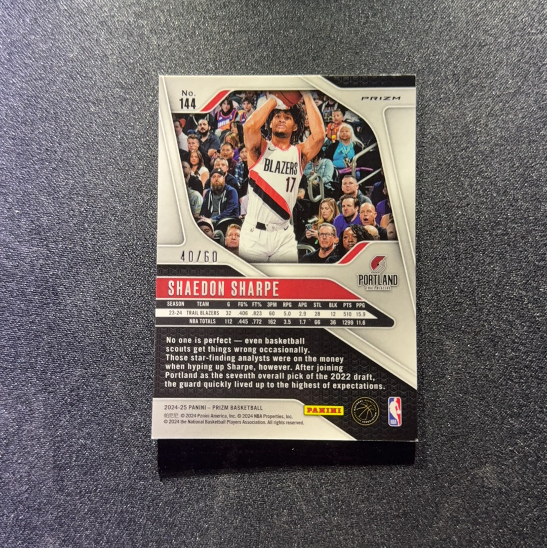 2024-25 Panini Prizm Shaedon Sharpe 谢登 夏普 开拓者 40/60编 橙波纹折 杨瀚森利拉德队友 卡品如图