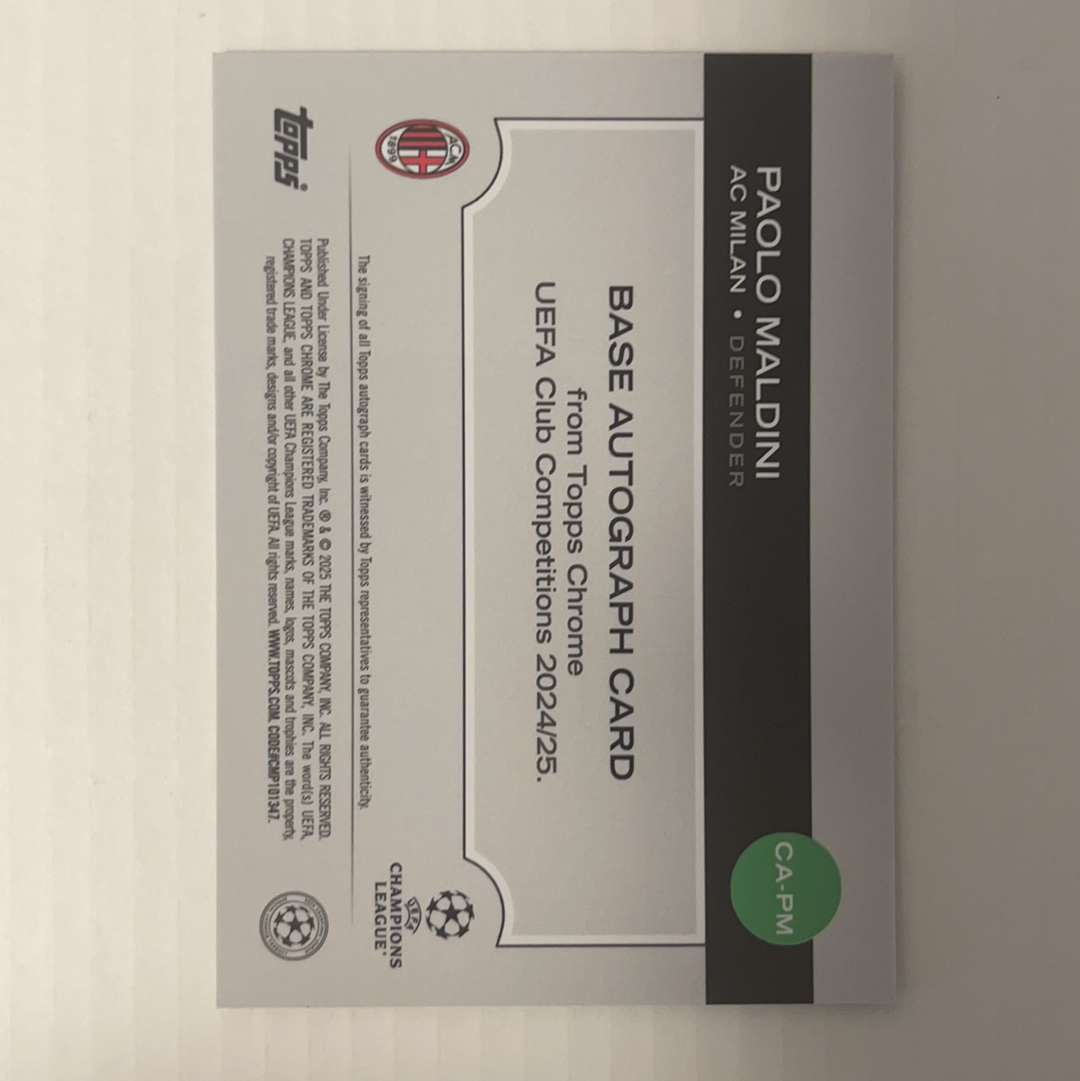 2025 Topps UEFA Champions League Paolo Maldini 2025 topps chrome 欧冠 马尔蒂尼 Paolo Maldini AC米兰 签字 75编紫折