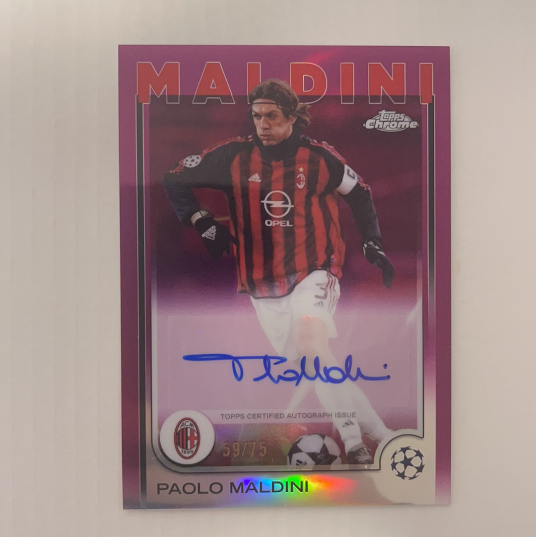 2025 topps chrome 欧冠 马尔蒂尼 Paolo Maldini 伟意左 一人守一城 意大利 AC米兰 签字 75编 紫折 多图已拍仔细看
